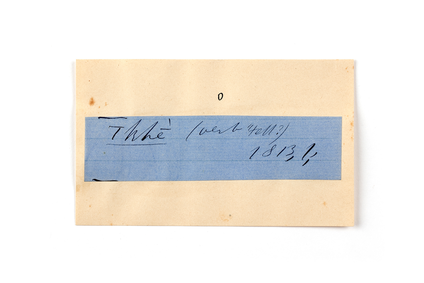 ink on blue paper glued on card