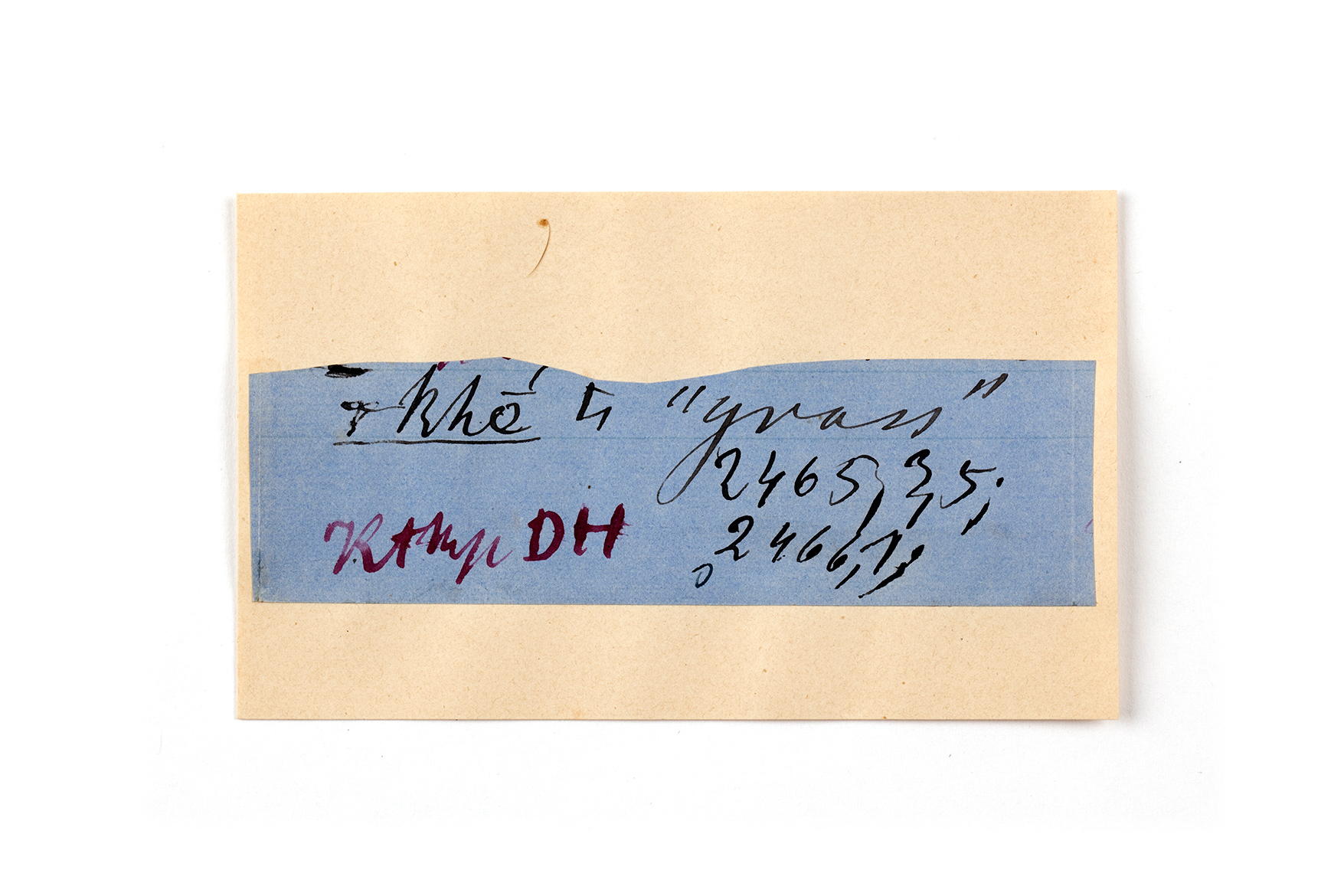 ink on blue paper glued on card
