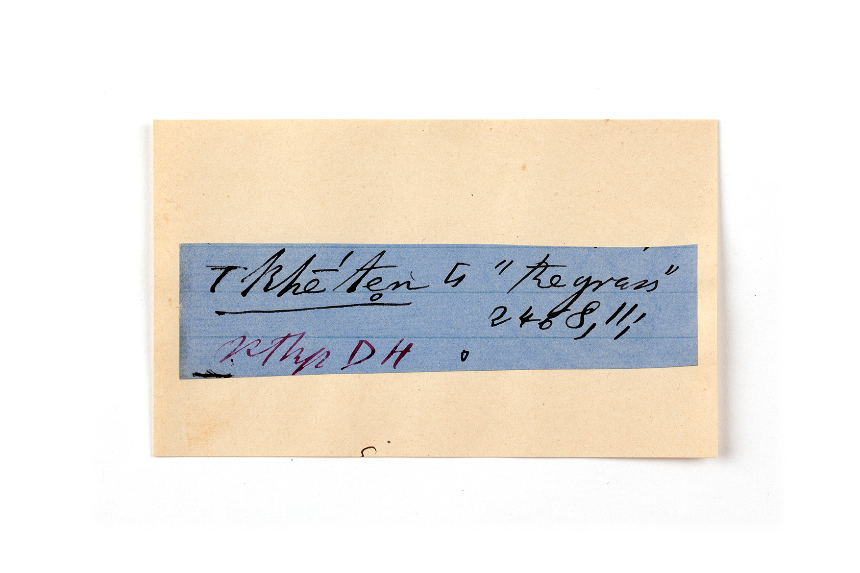 ink on blue paper glued on card