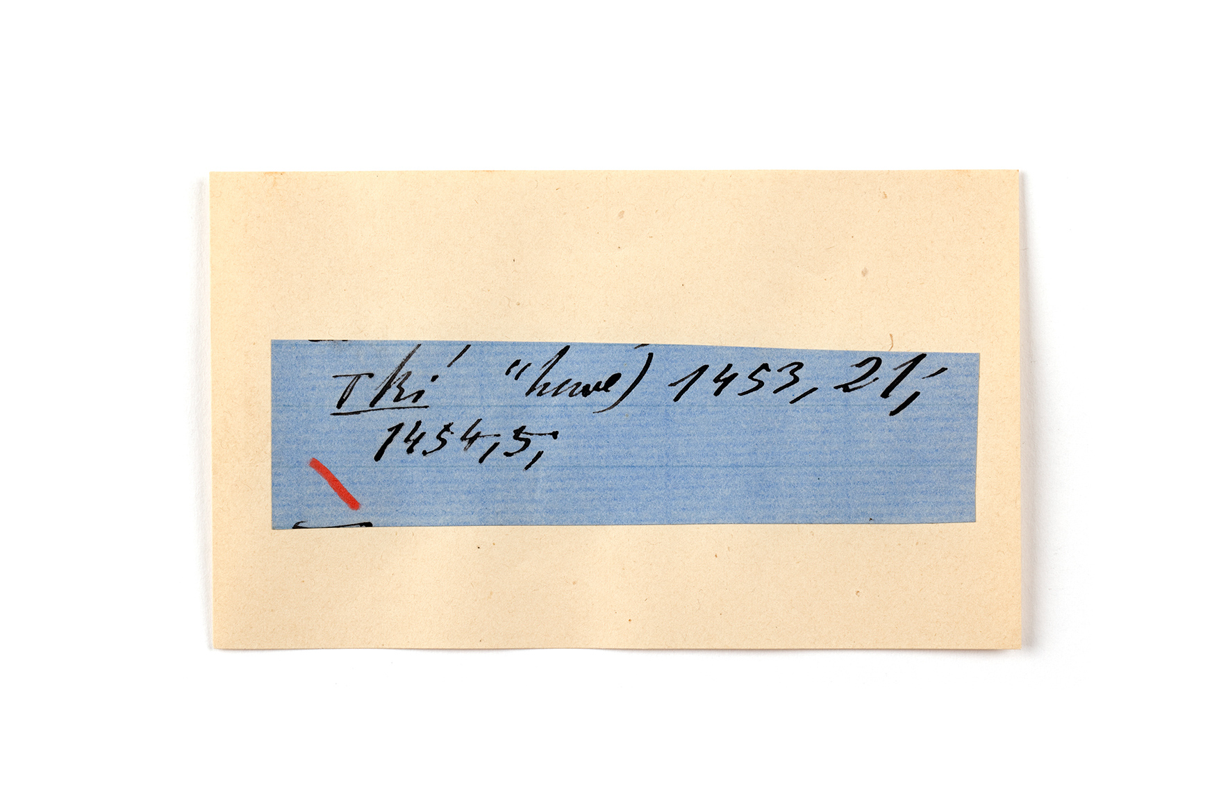 ink on blue paper glued on card
