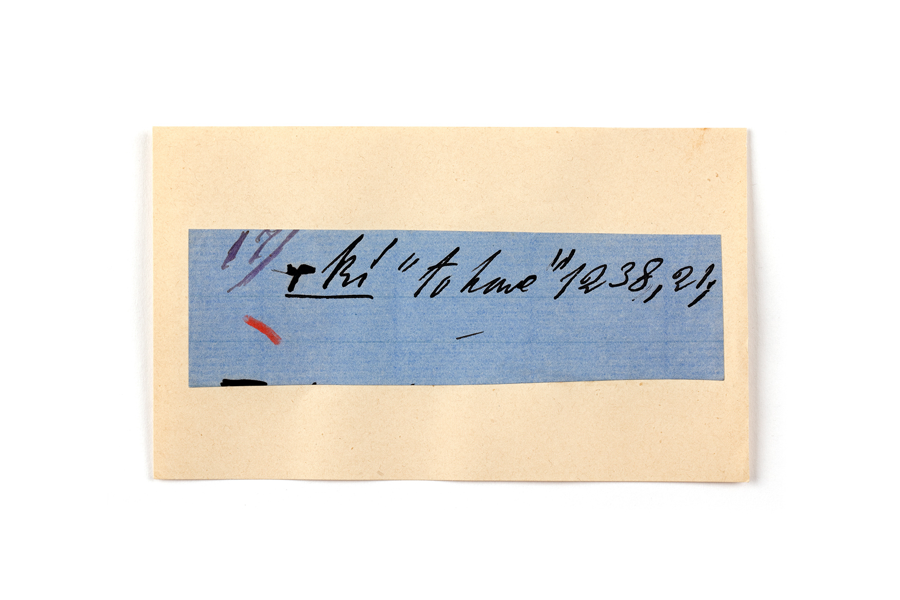 ink on blue paper glued on card