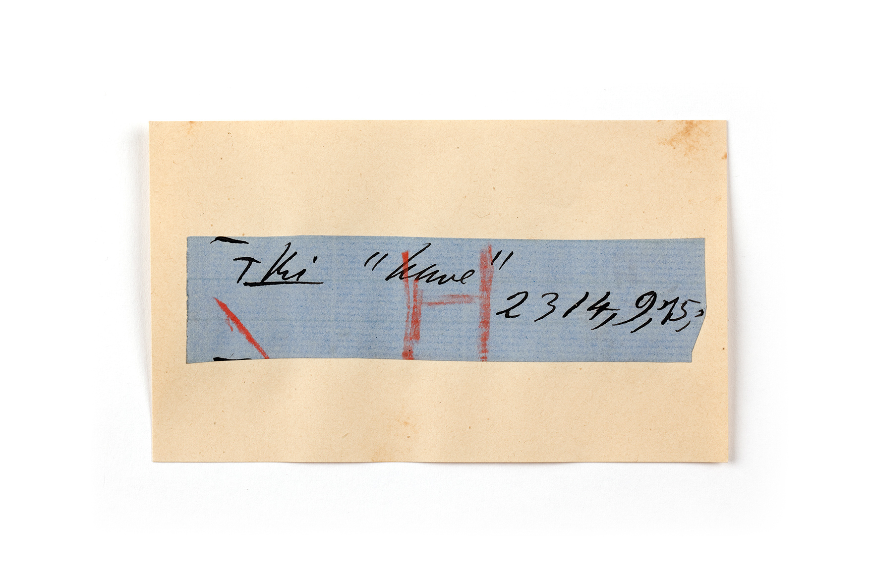 ink on blue paper glued on card
