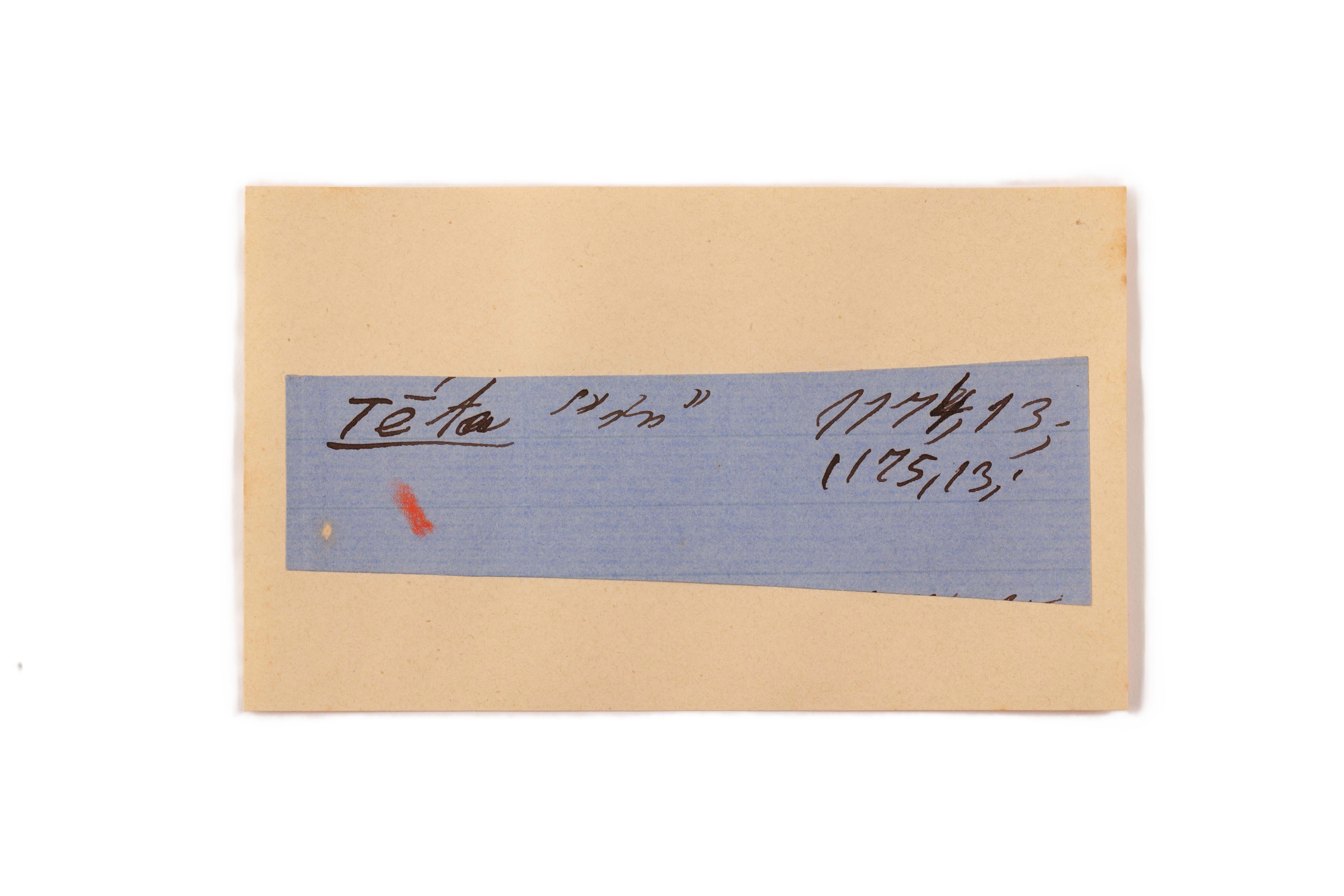 ink on blue paper glued on card
