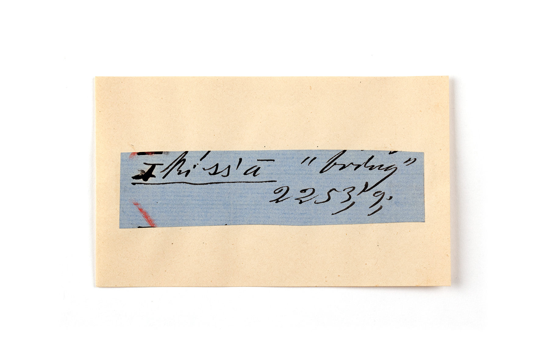 ink on blue paper glued on card