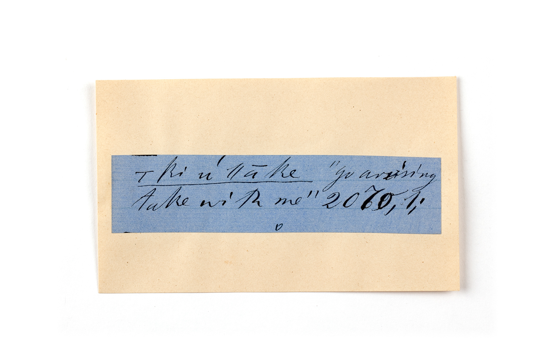 ink on blue paper glued on card