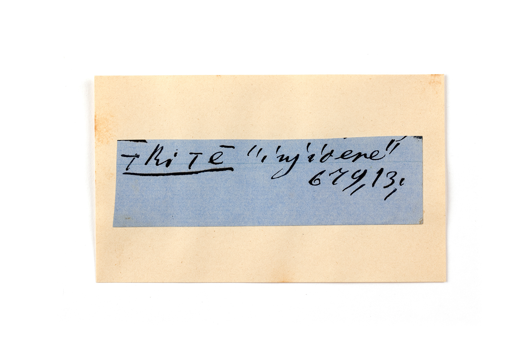 ink on blue paper glued on card