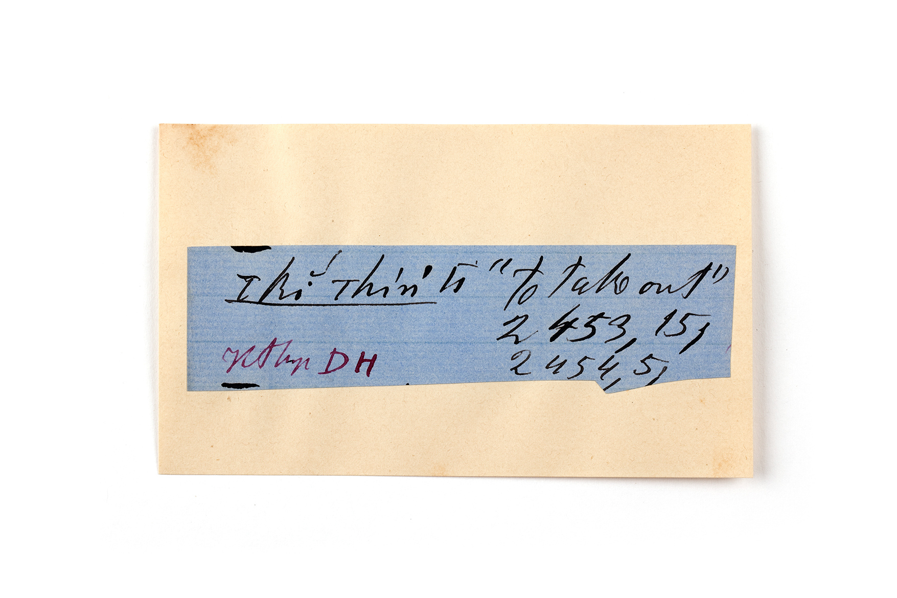 ink on blue paper glued on card