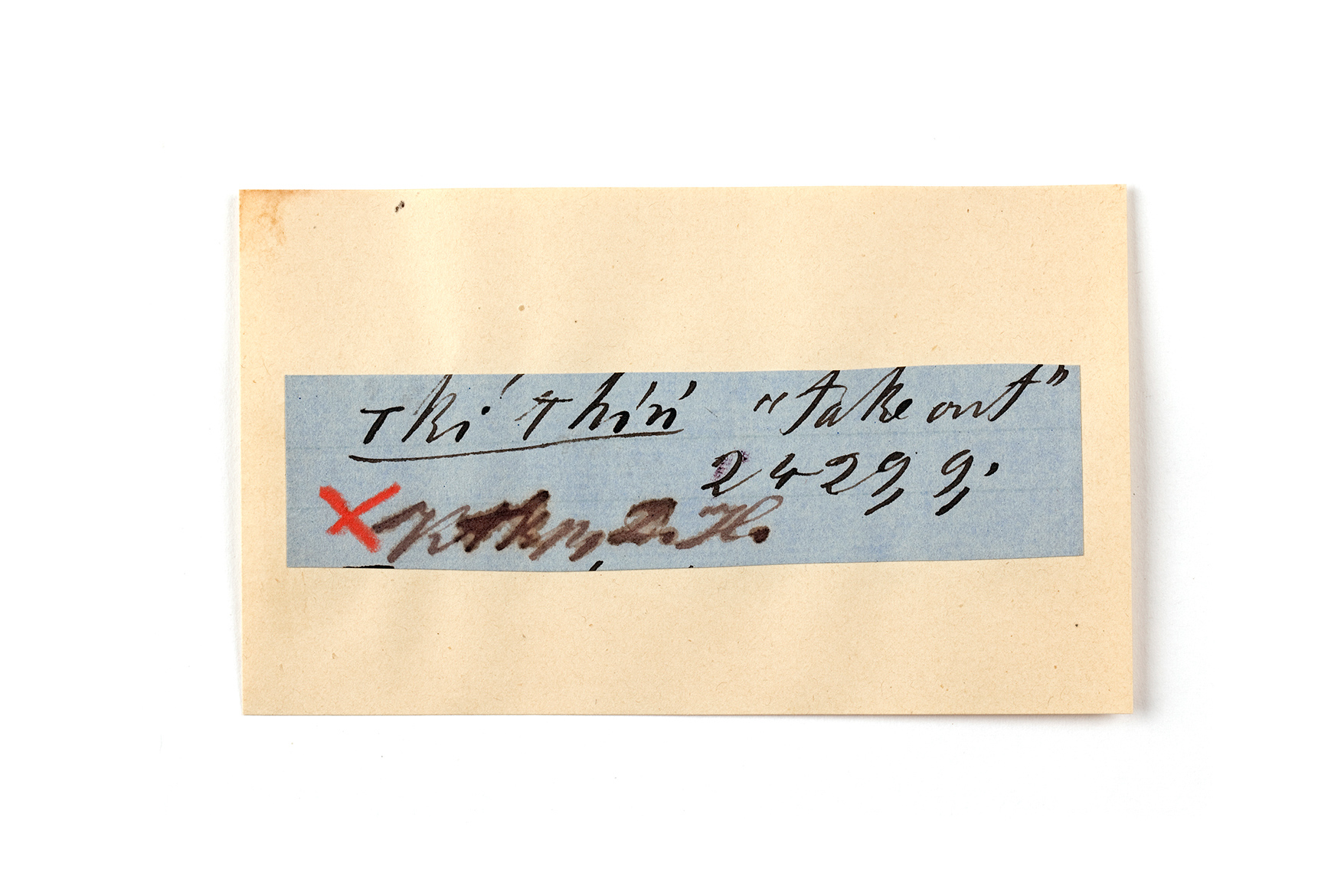 ink on blue paper glued on card