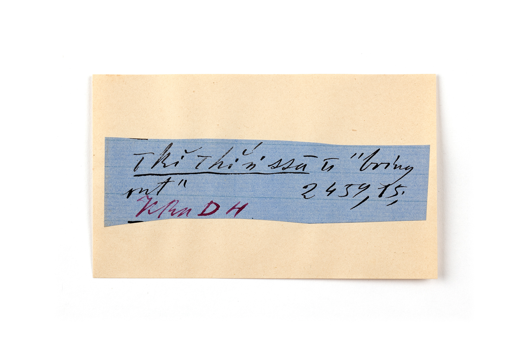 ink on blue paper glued on card