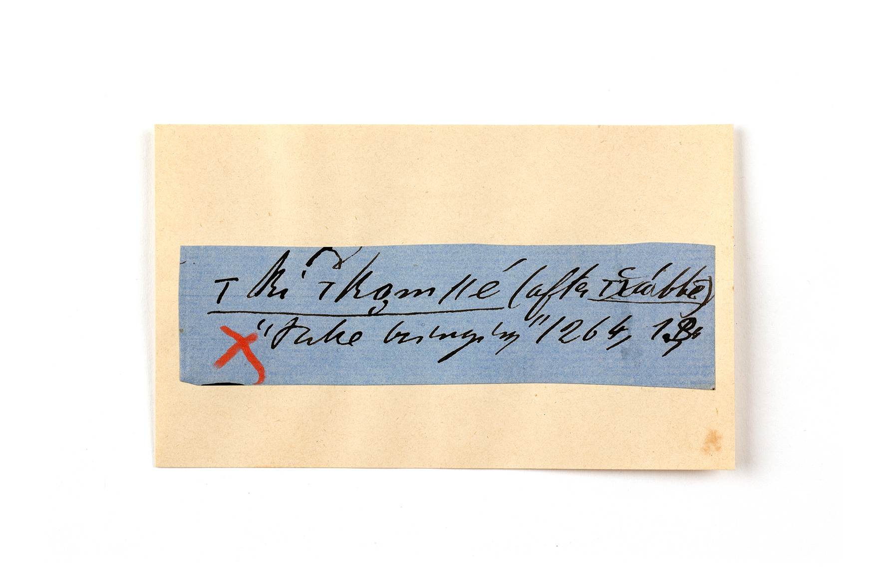 ink on blue paper glued on card