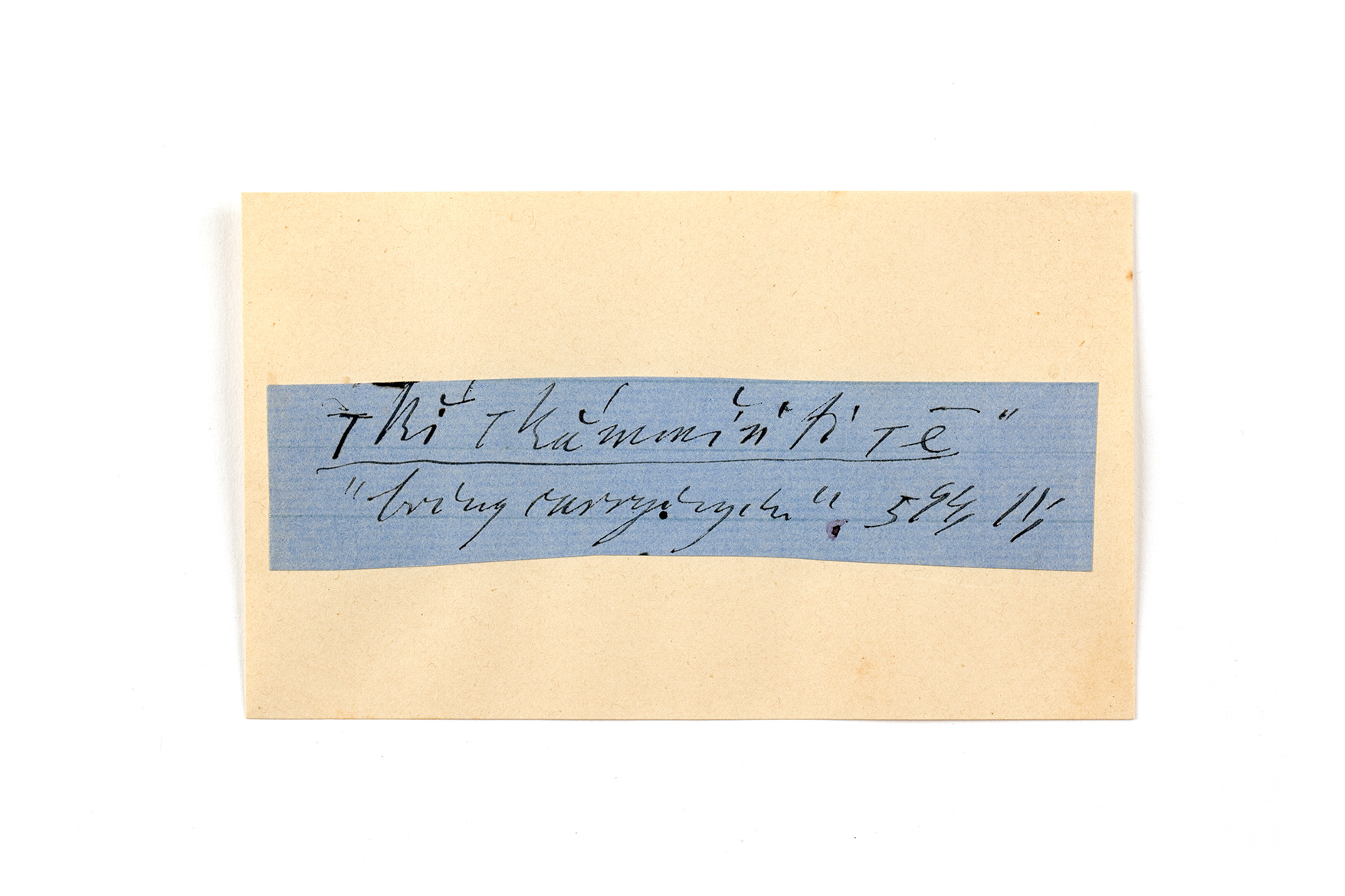 ink on blue paper glued on card