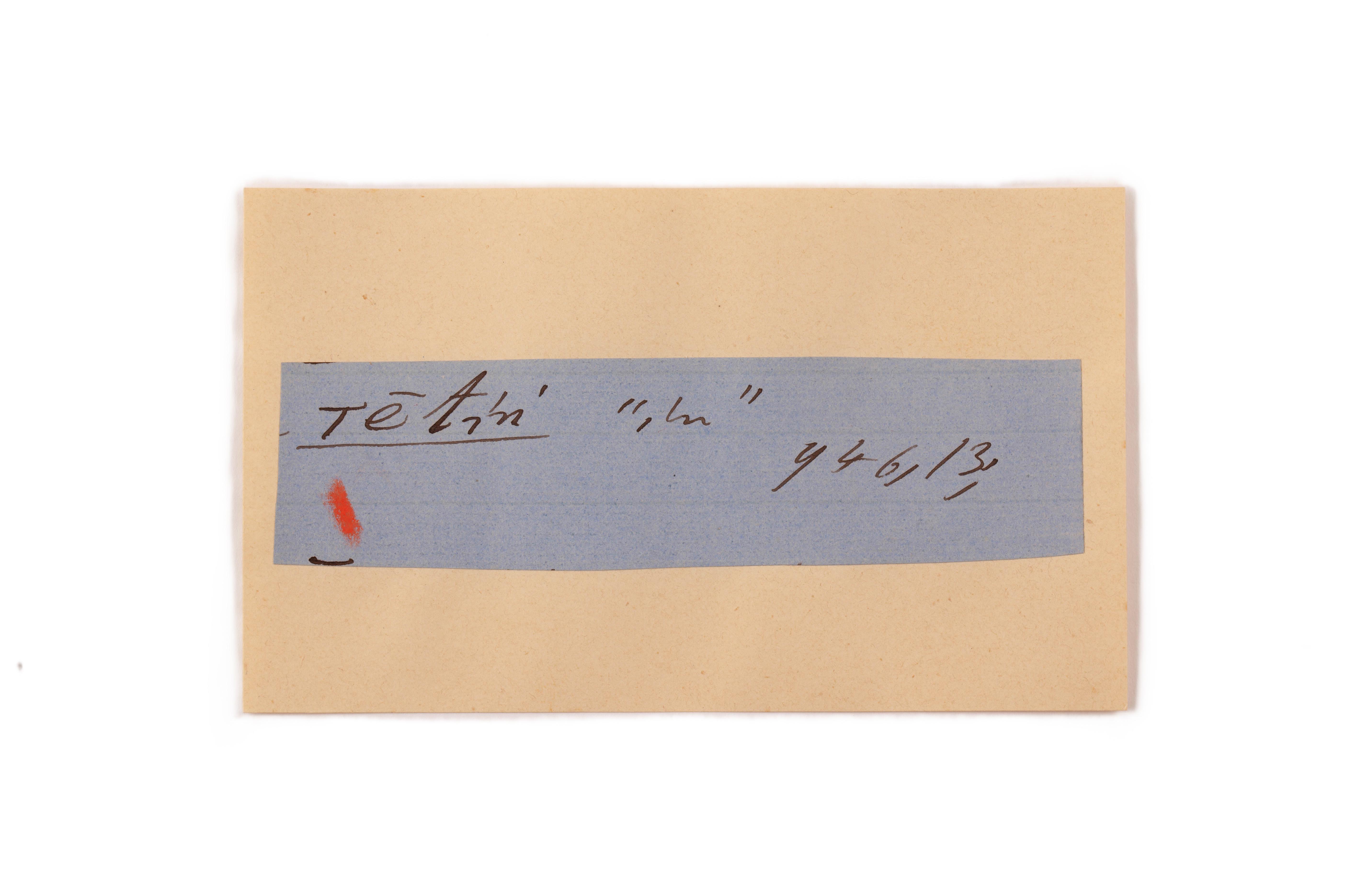 ink on blue paper glued on card