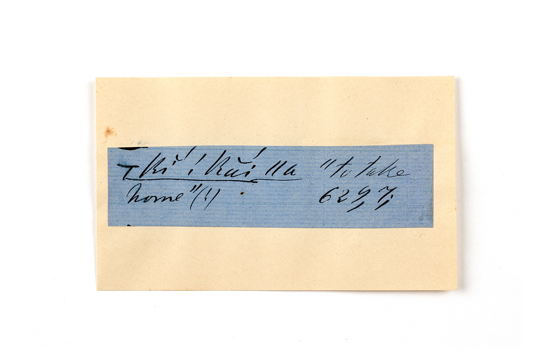 ink on blue paper glued on card