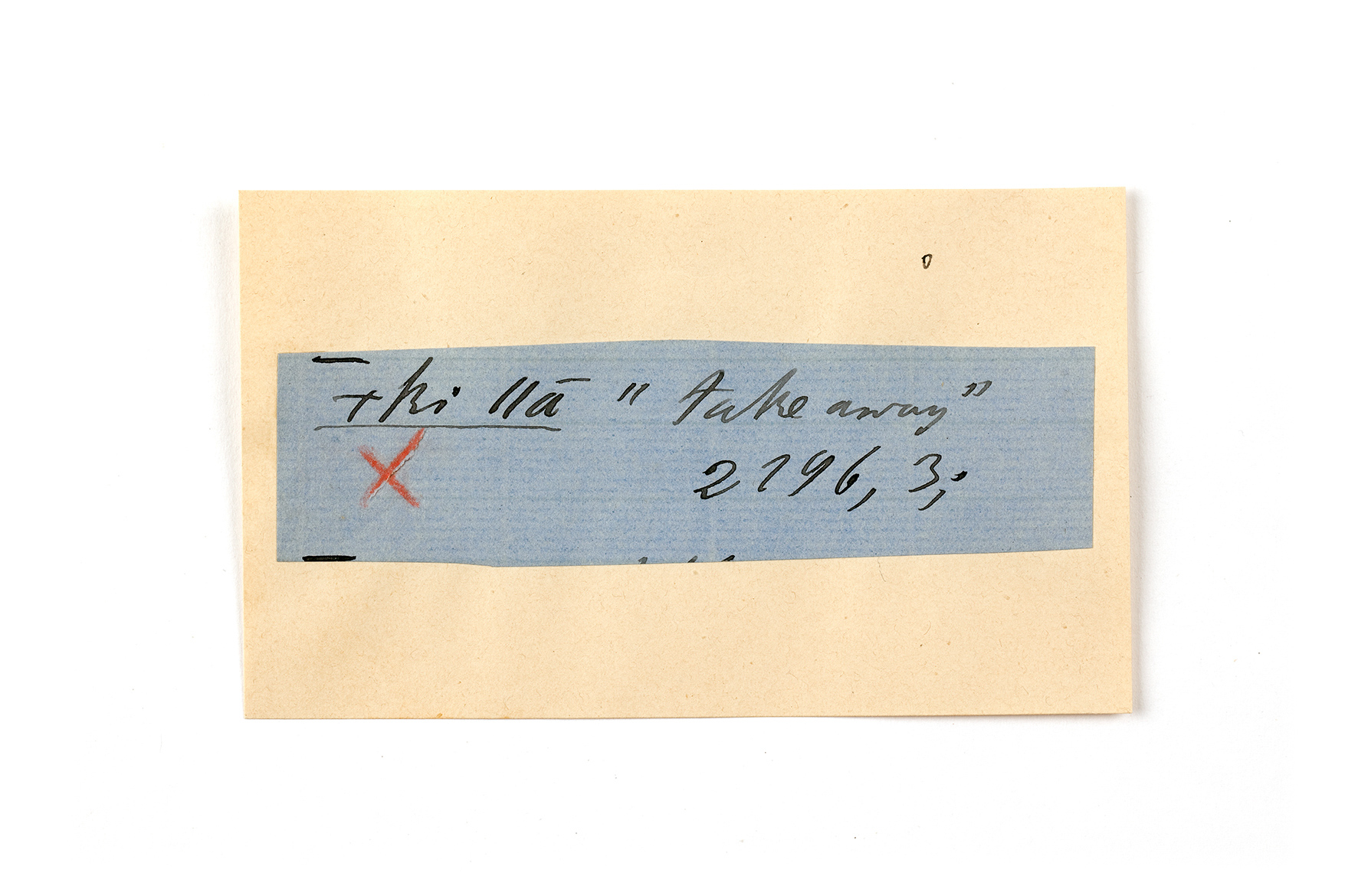 ink on blue paper glued on card