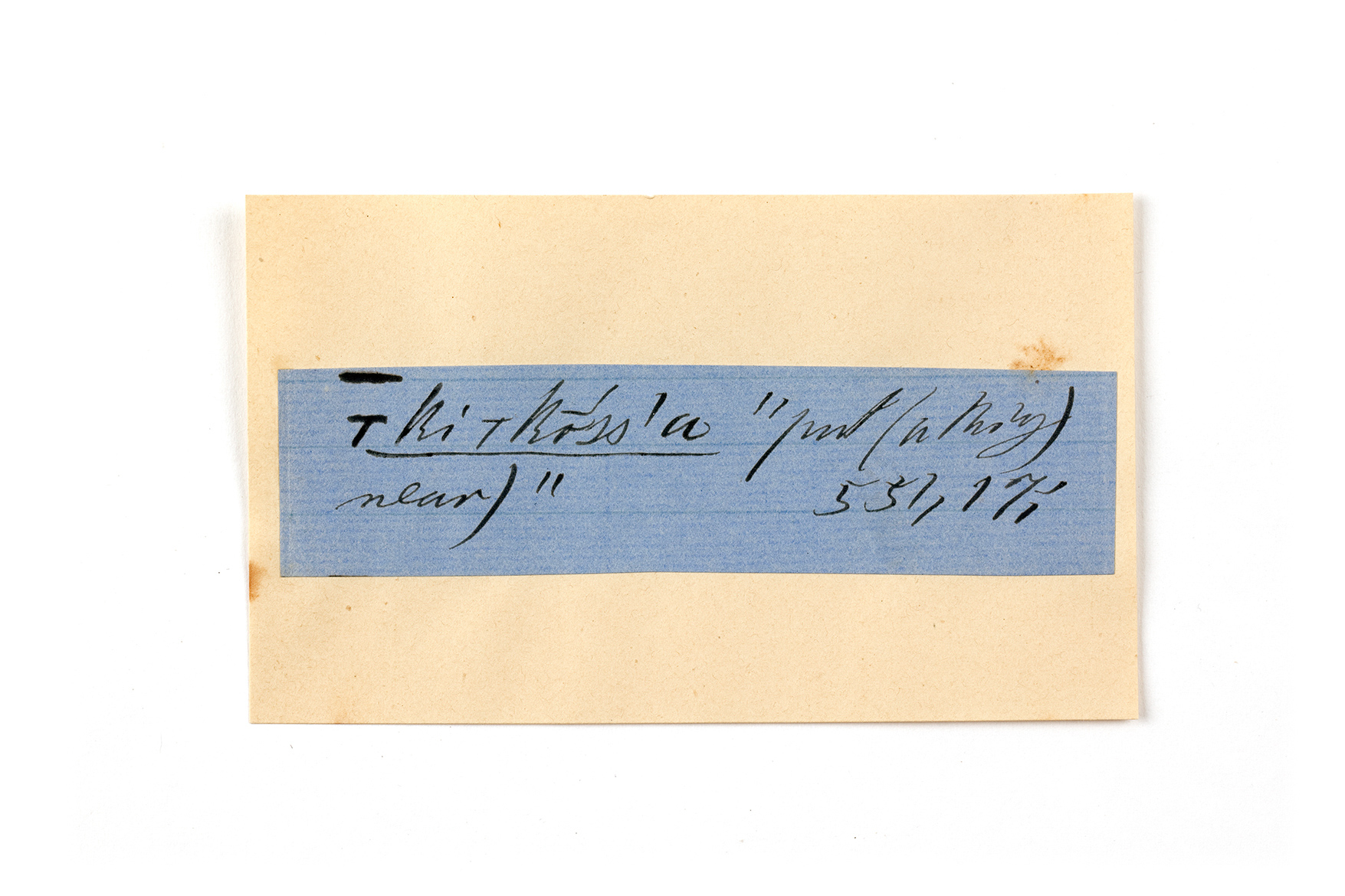 ink on blue paper glued on card