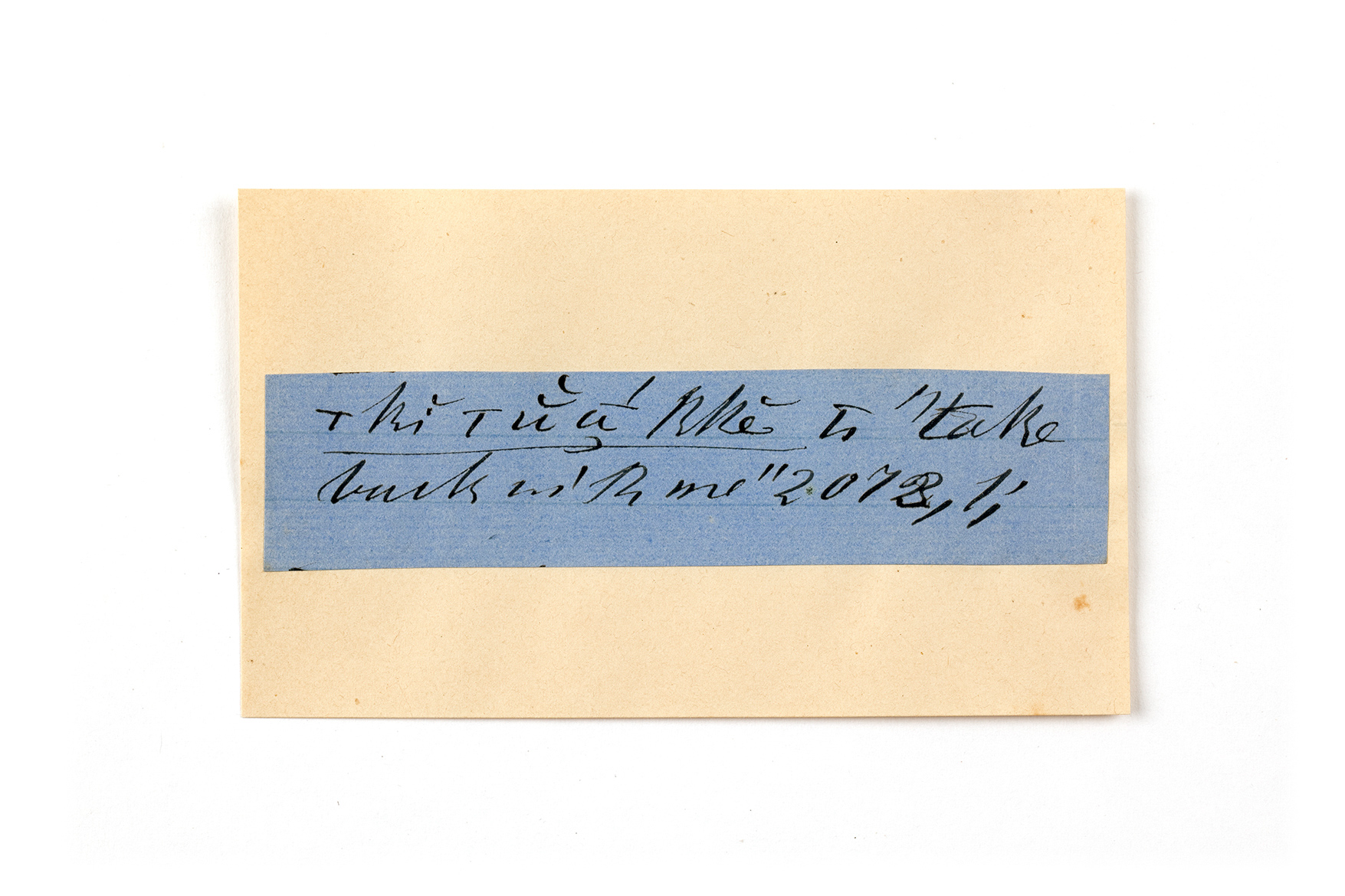 ink on blue paper glued on card