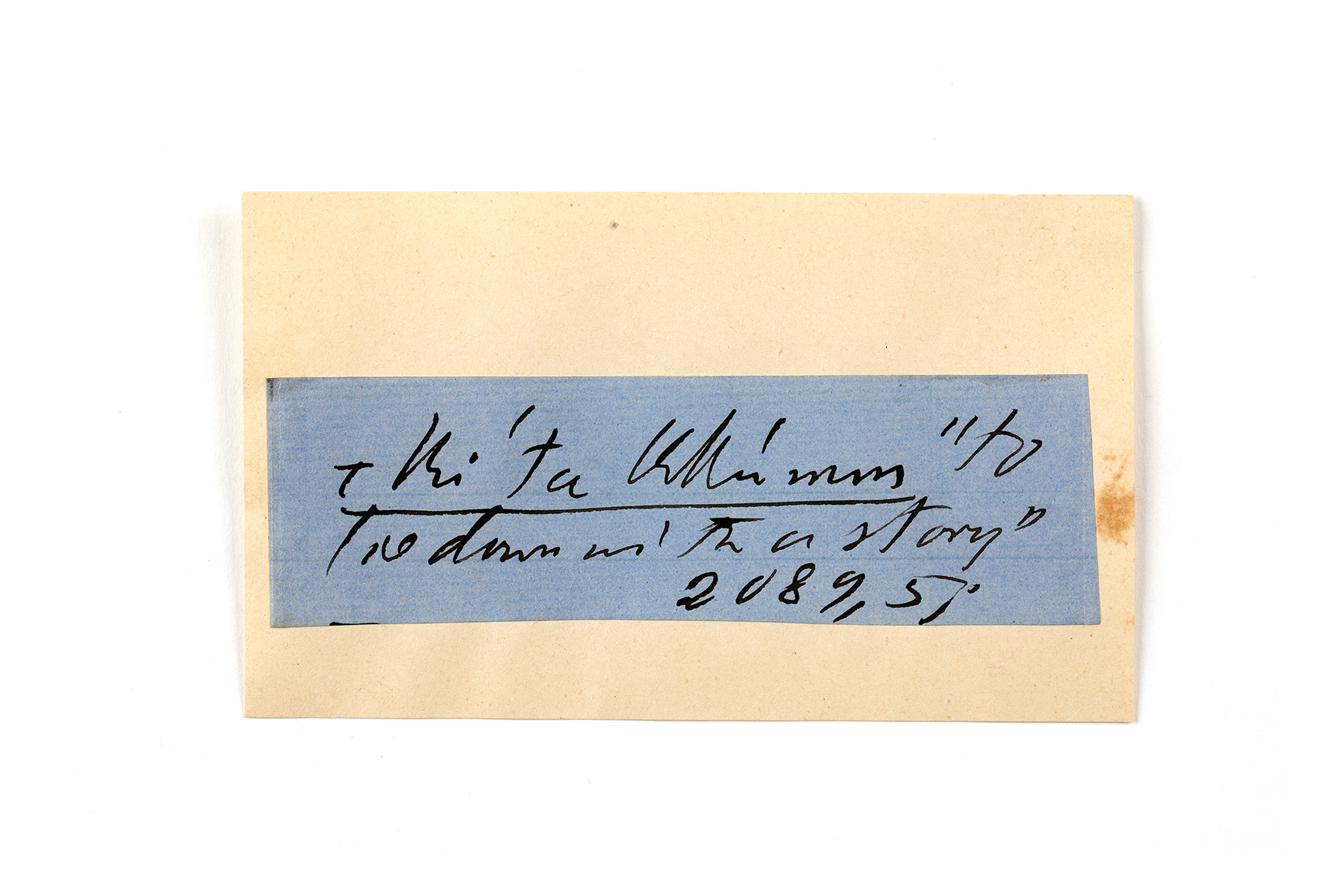 ink on blue paper glued on card
