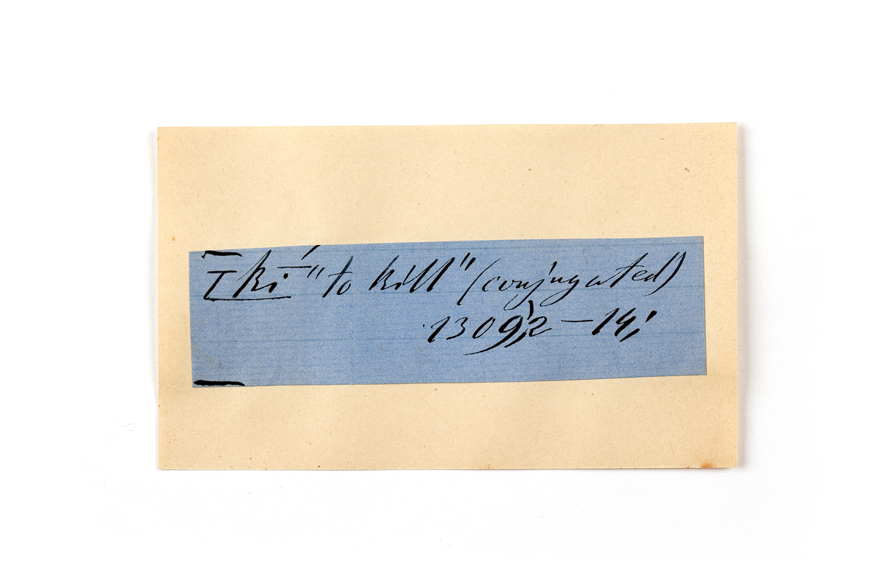 ink on blue paper glued on card