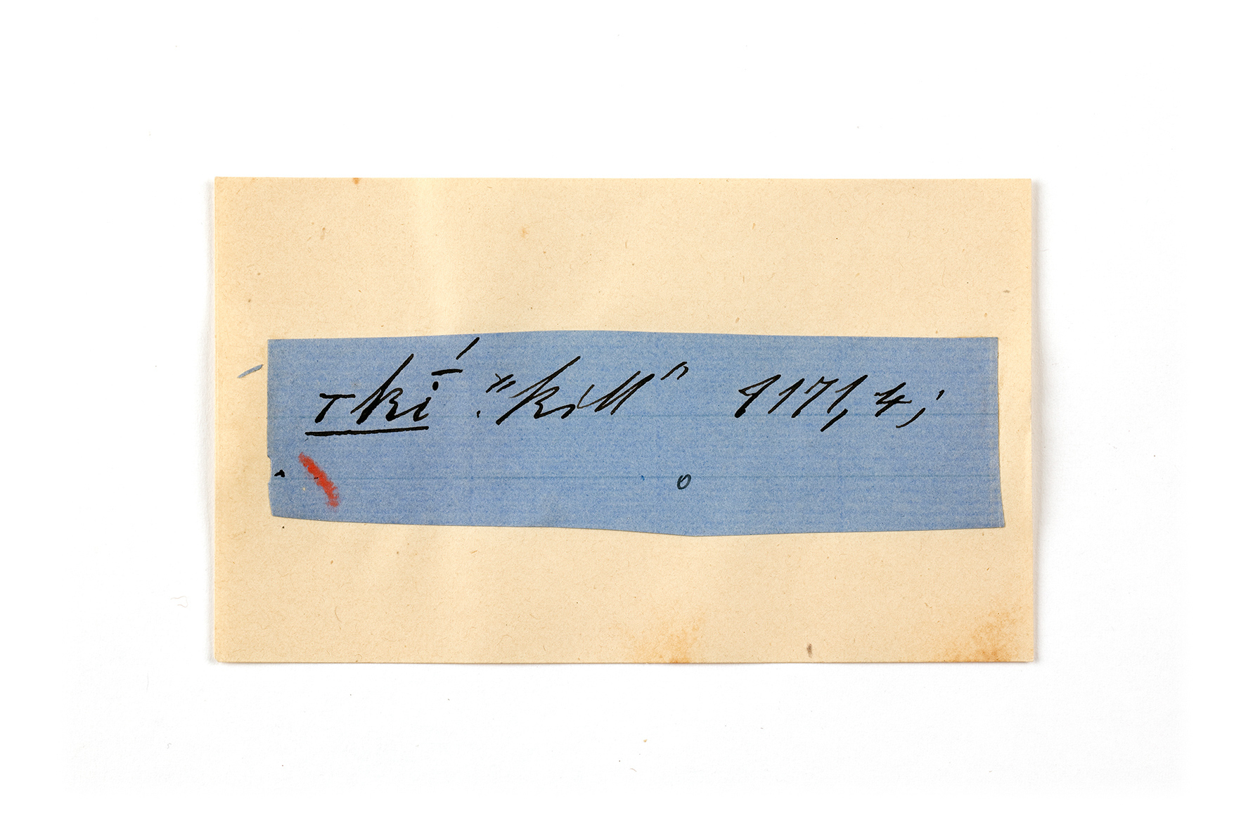 ink on blue paper glued on card