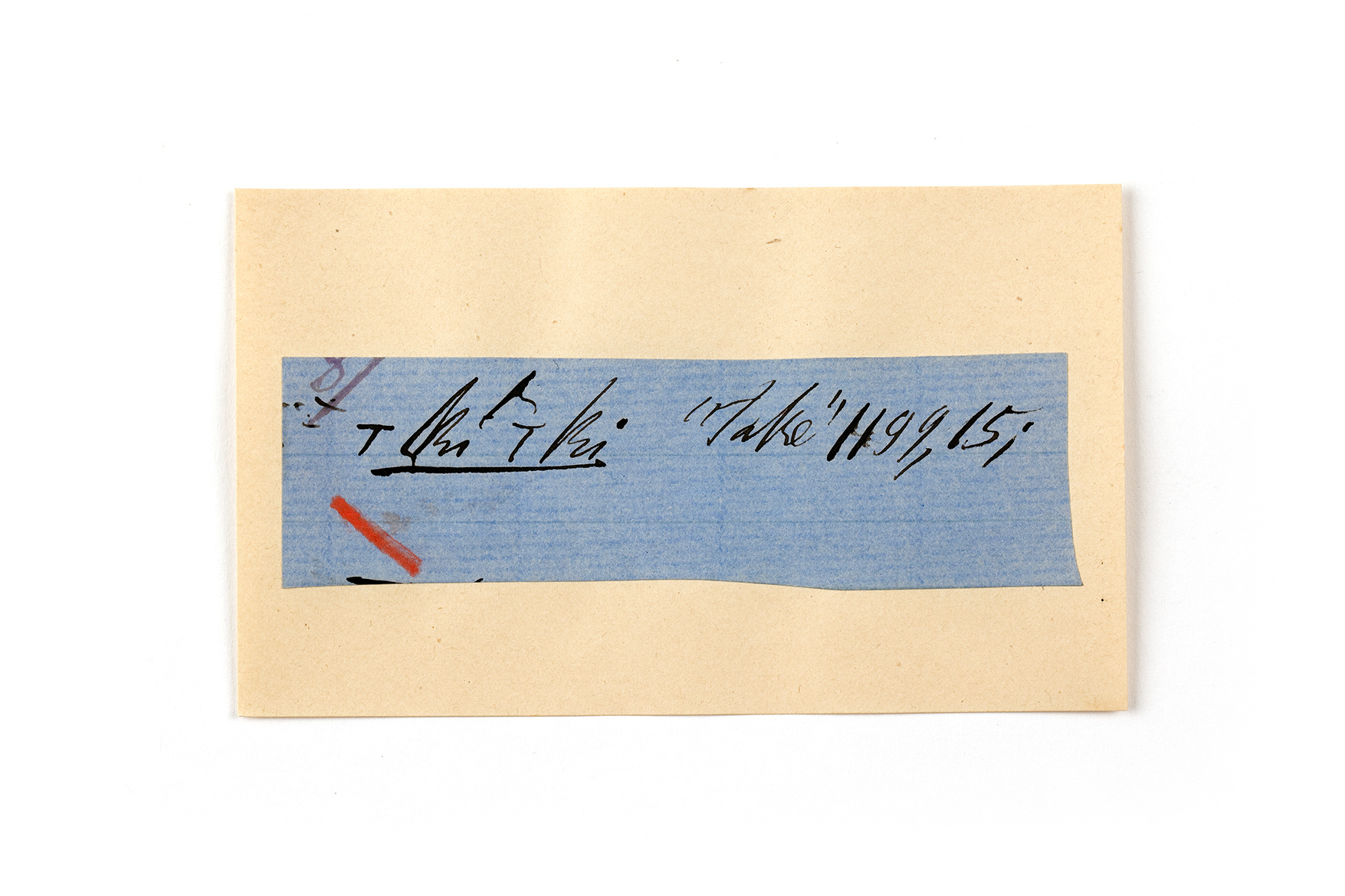 ink on blue paper glued on card