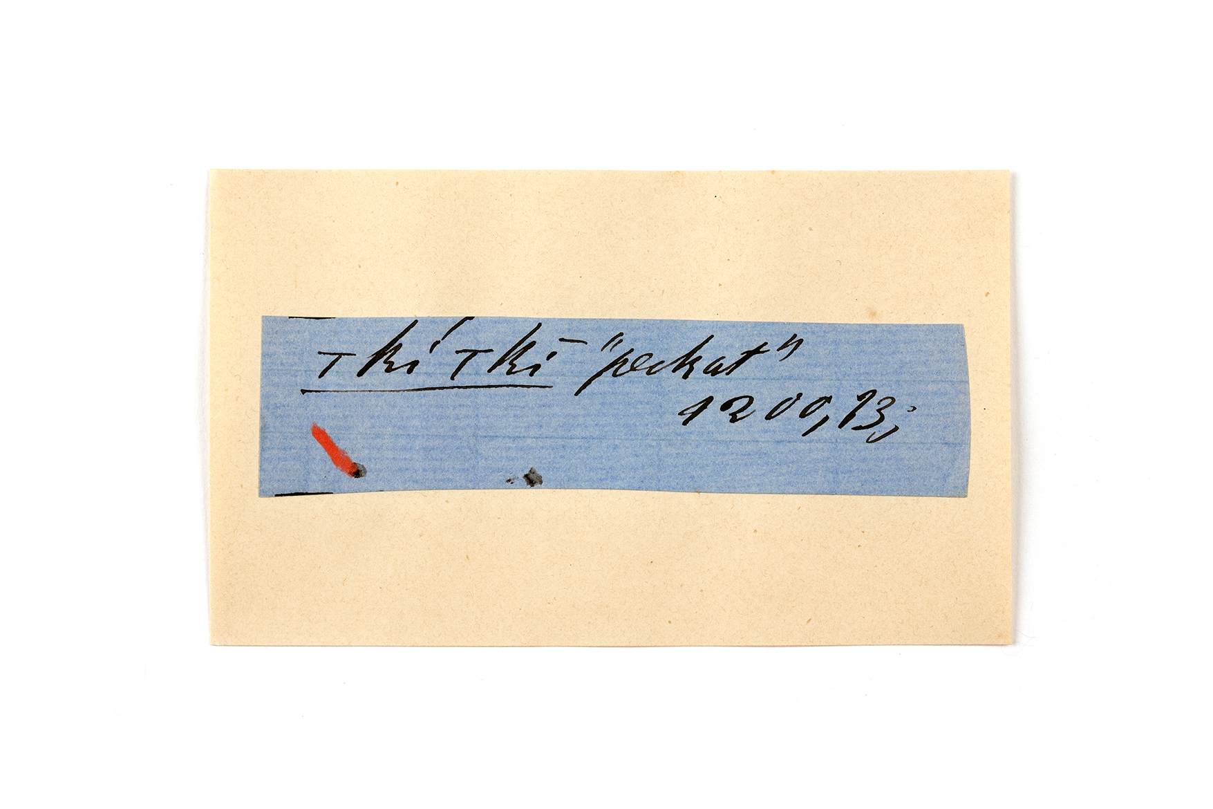 ink on blue paper glued on card