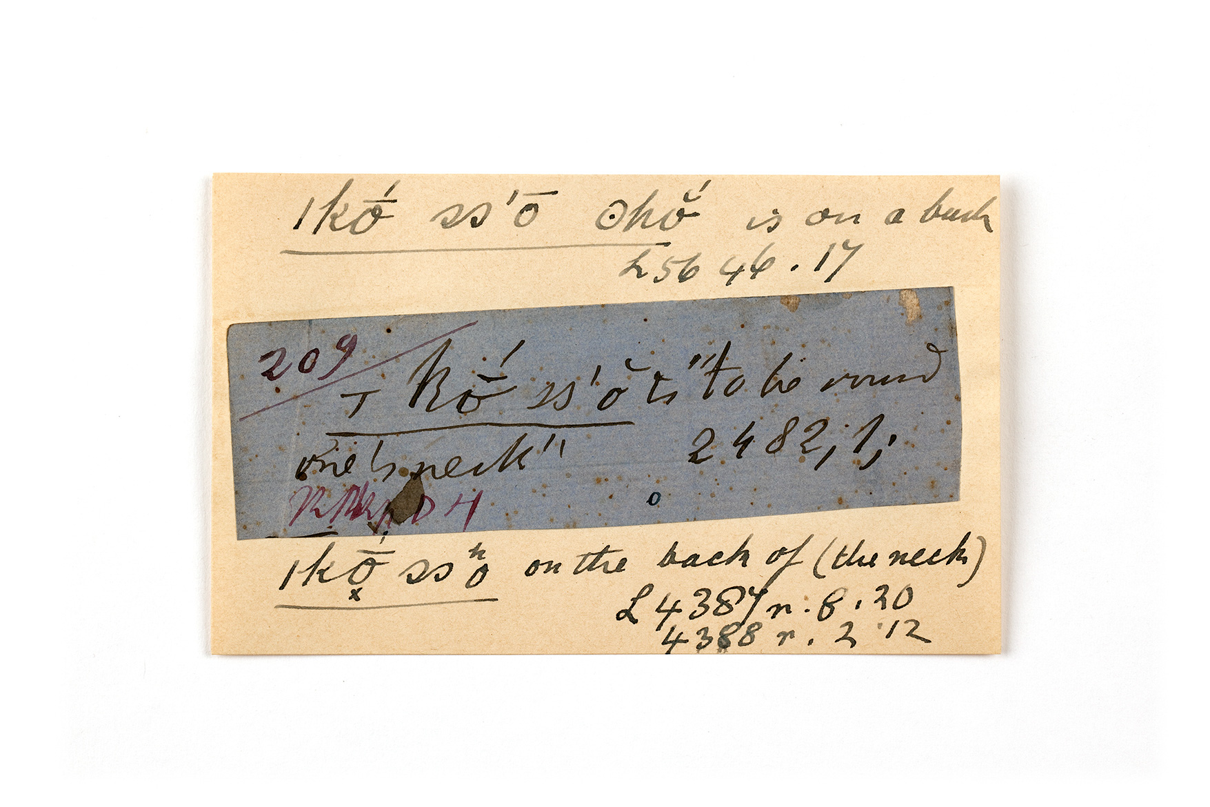 back (is on a), around one's neck (to be), back of the neck (on the)