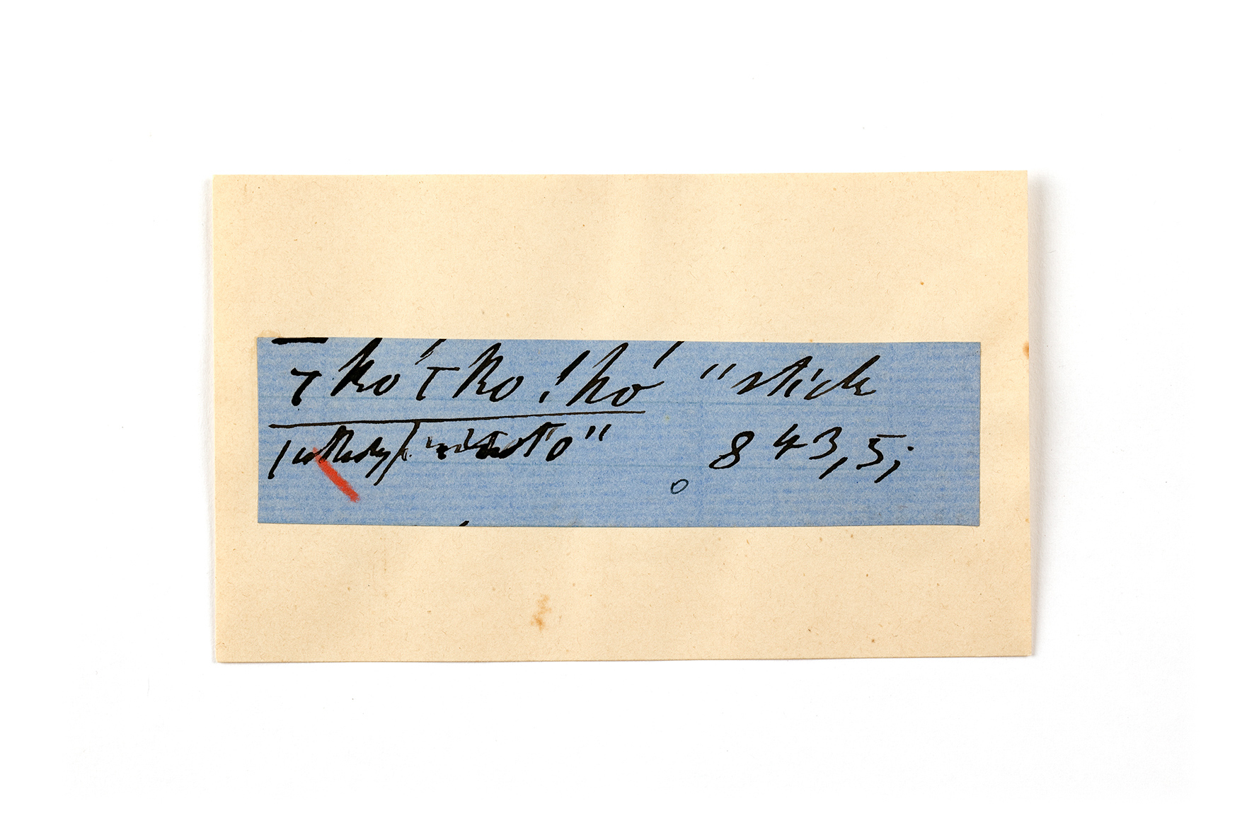 ink on blue paper glued on card