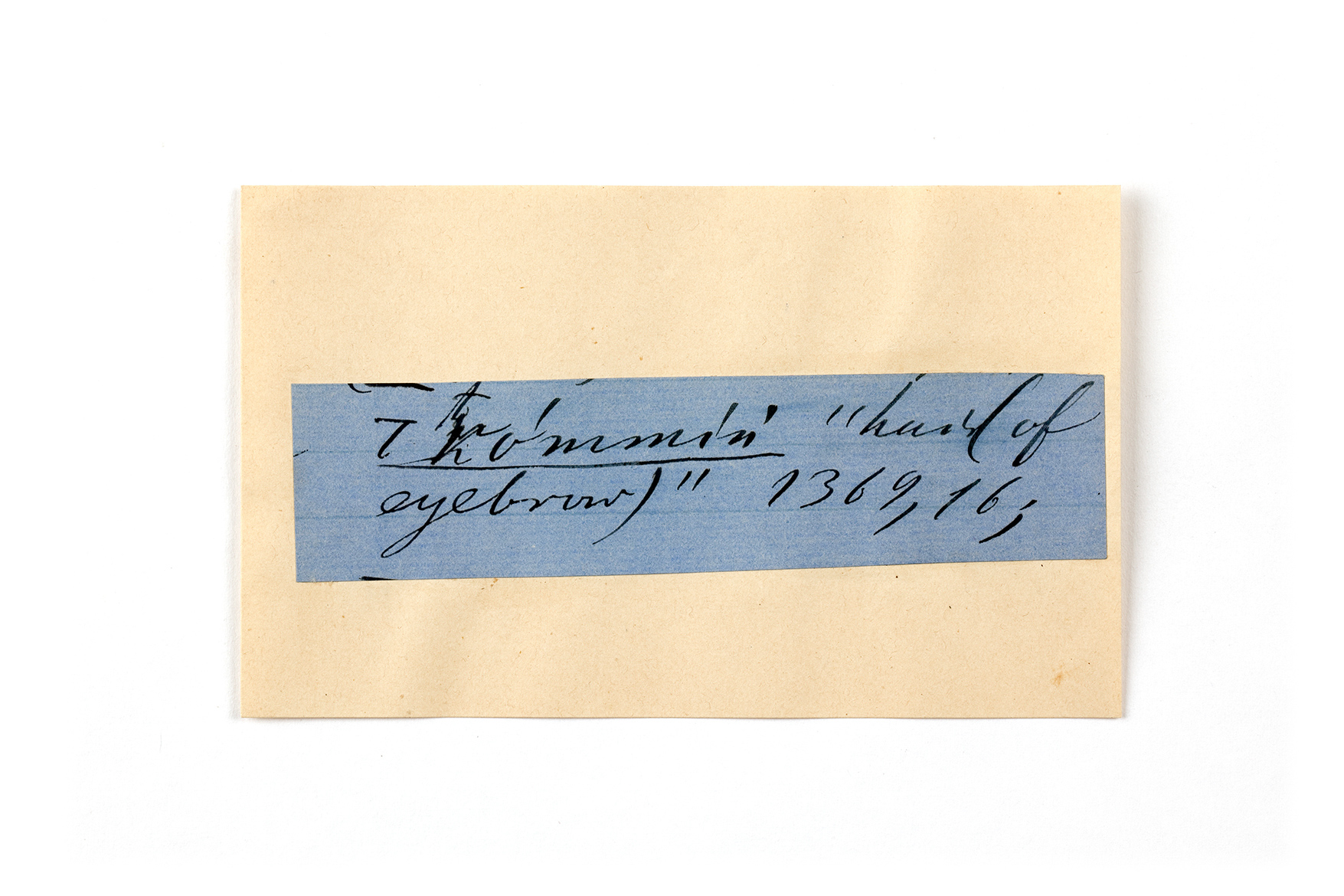 ink on blue paper glued on card