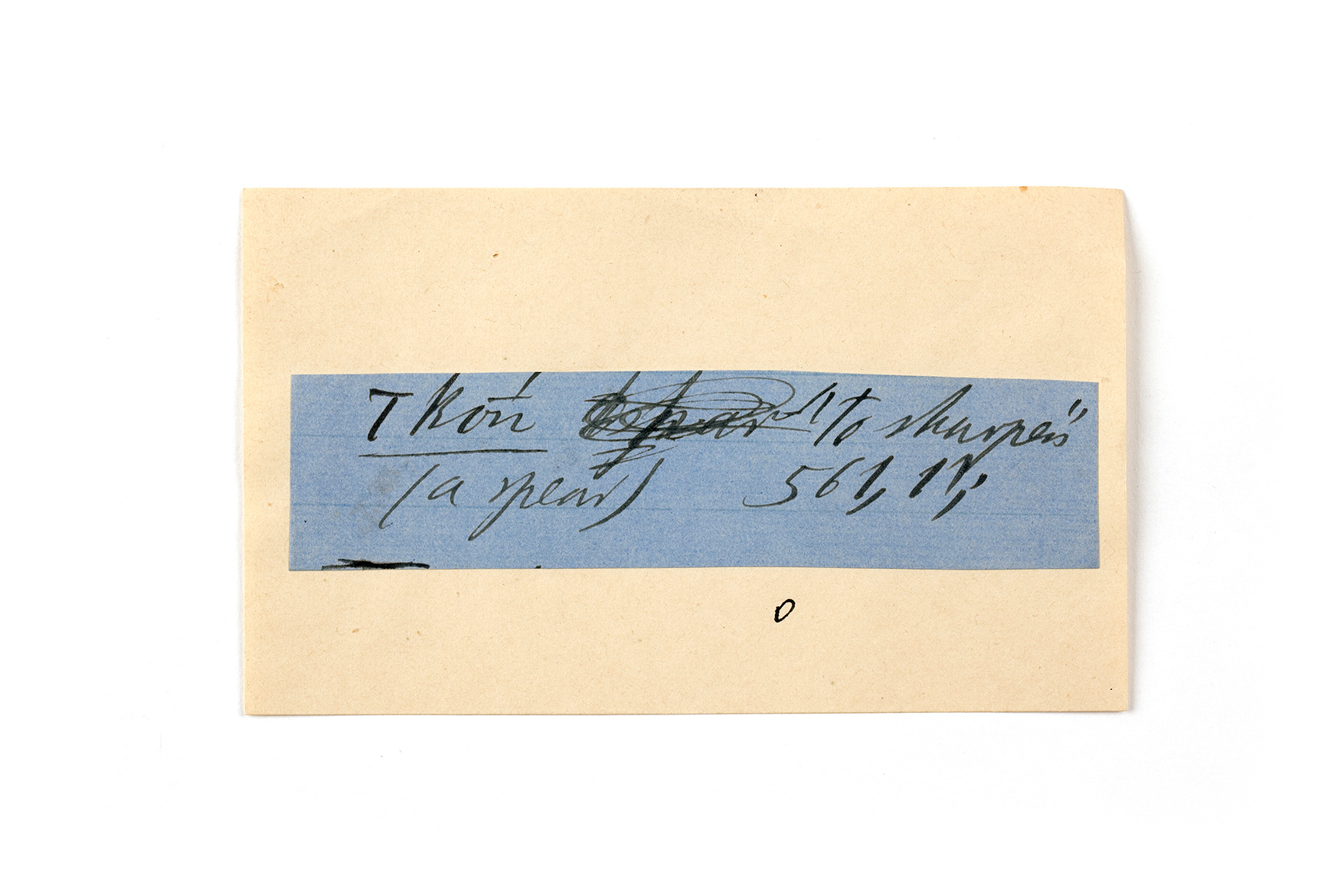 ink on blue paper glued on card