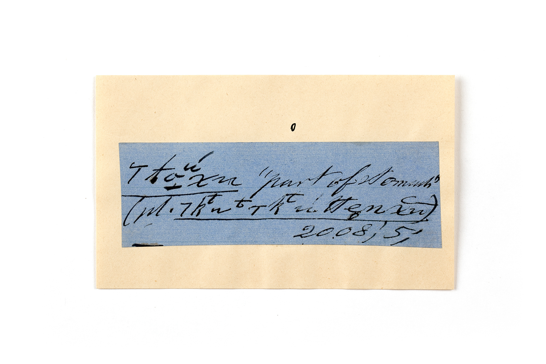 ink on blue paper glued on card