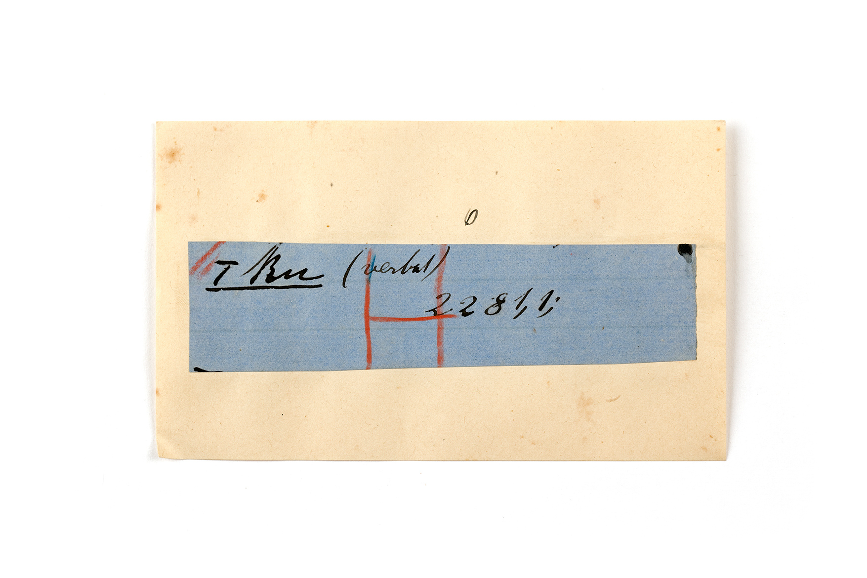 ink on blue paper glued on card