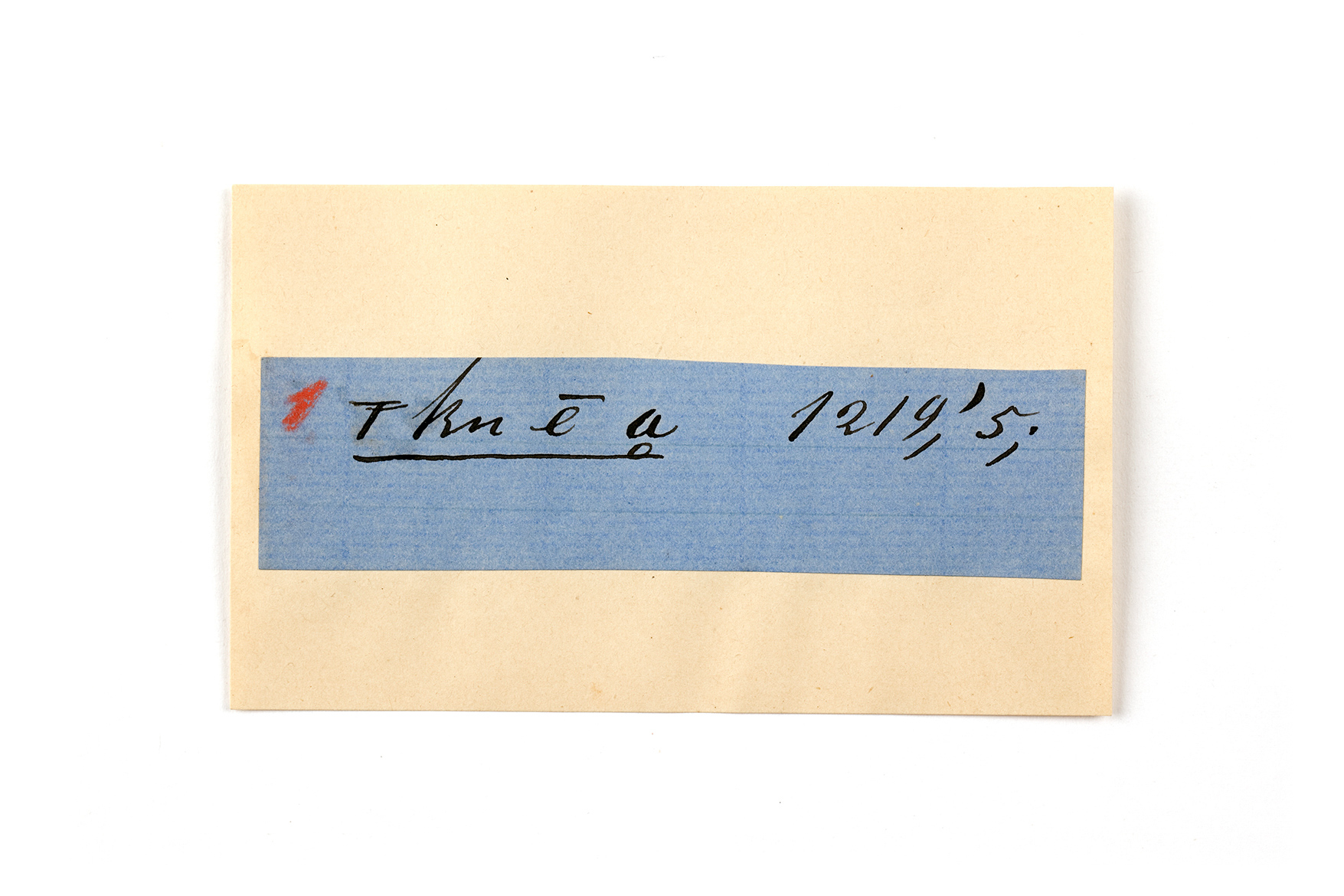 ink on blue paper glued on card