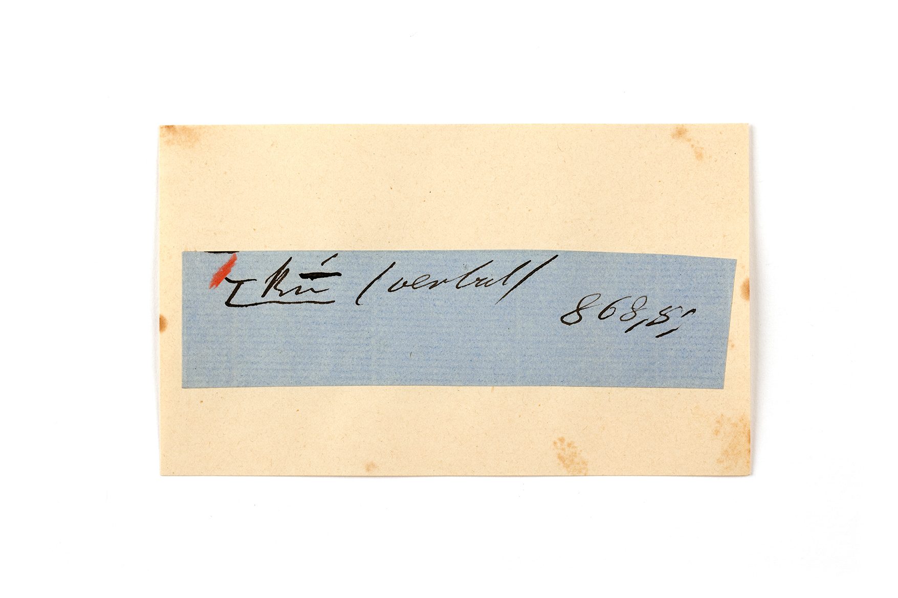 ink on blue paper glued on card