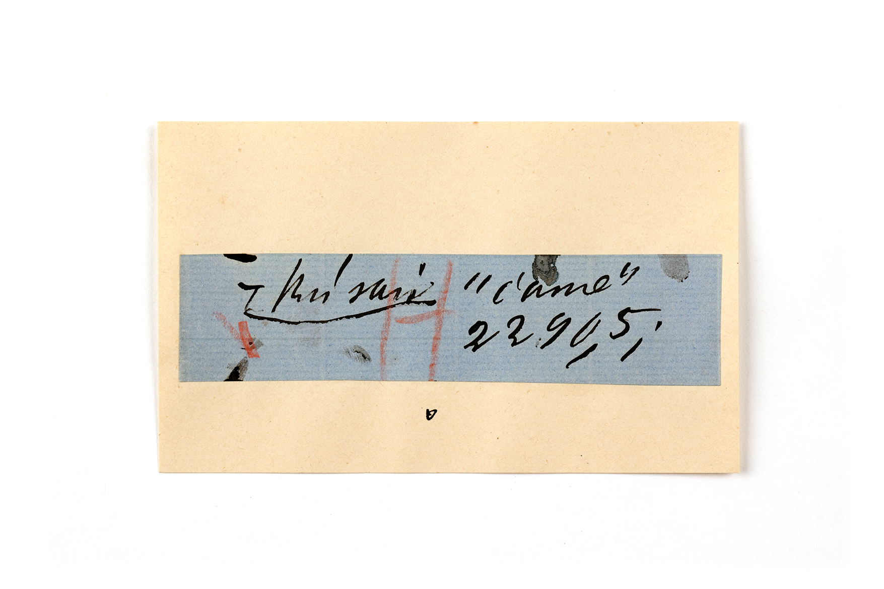 ink on blue paper glued on card