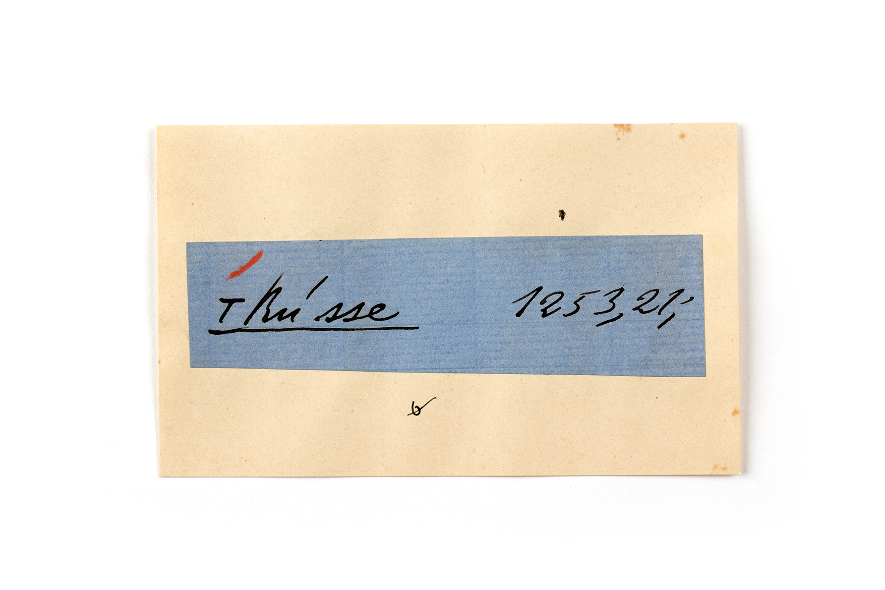 ink on blue paper glued on card