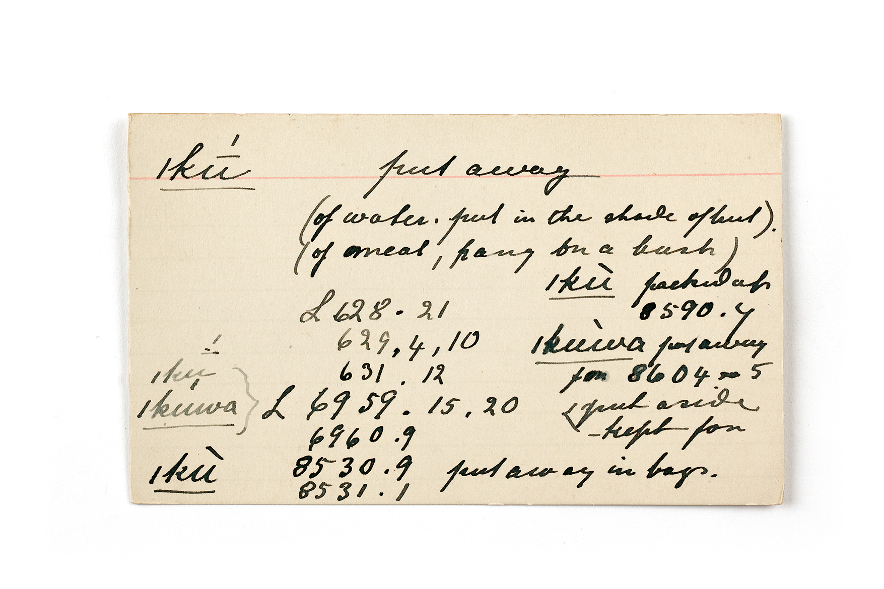put away (water), put in the shade of a hut (water), put away (meal), hang on a bush (meal), packed up, put aside, kept for, put away in bags