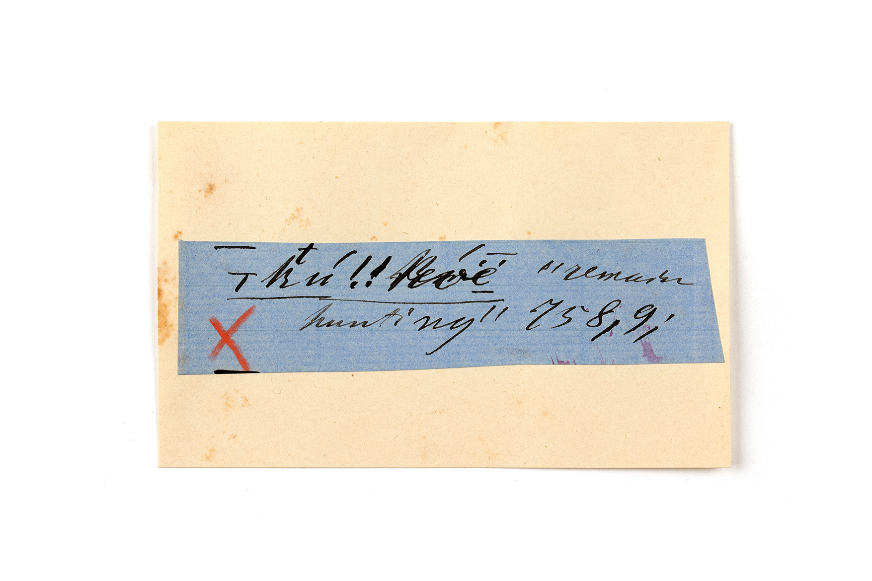 ink on blue paper glued on card