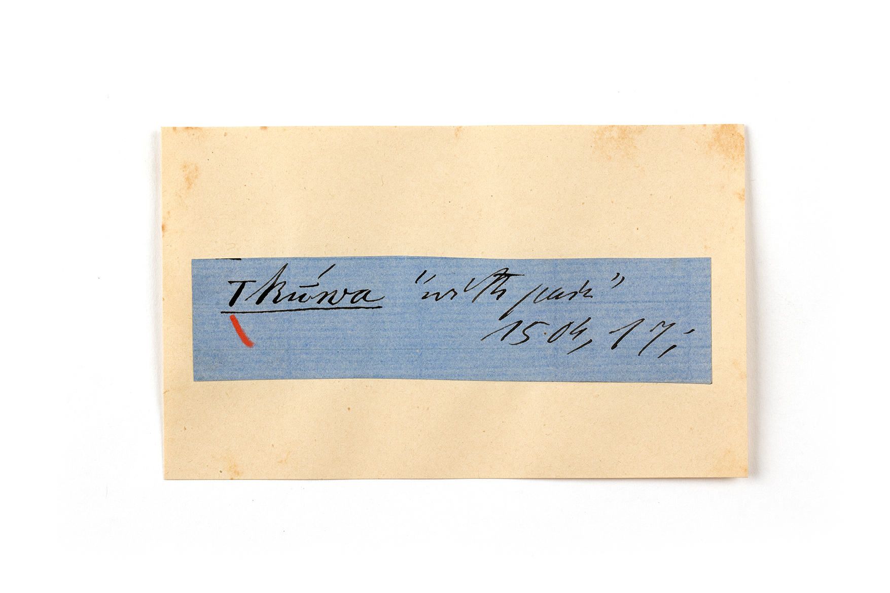 ink on blue paper glued on card