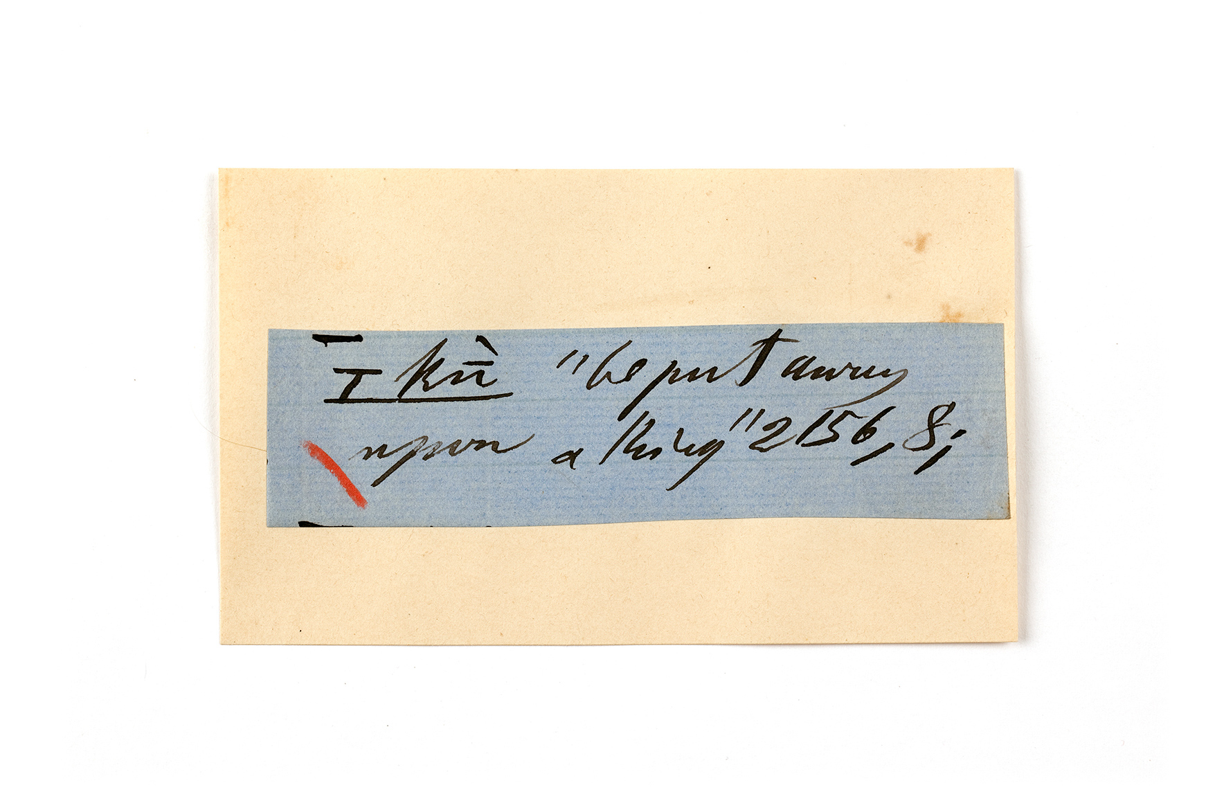 ink on blue paper glued on card