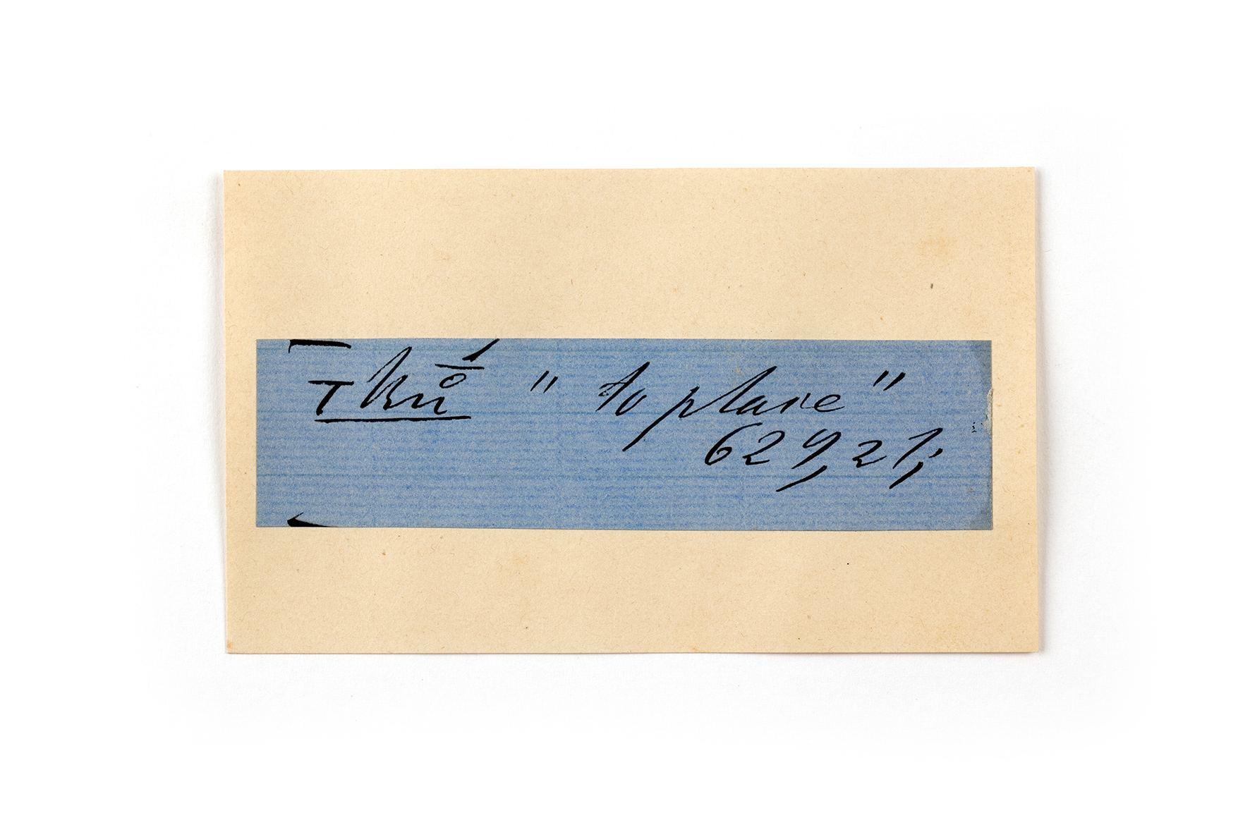 ink on blue paper glued on card