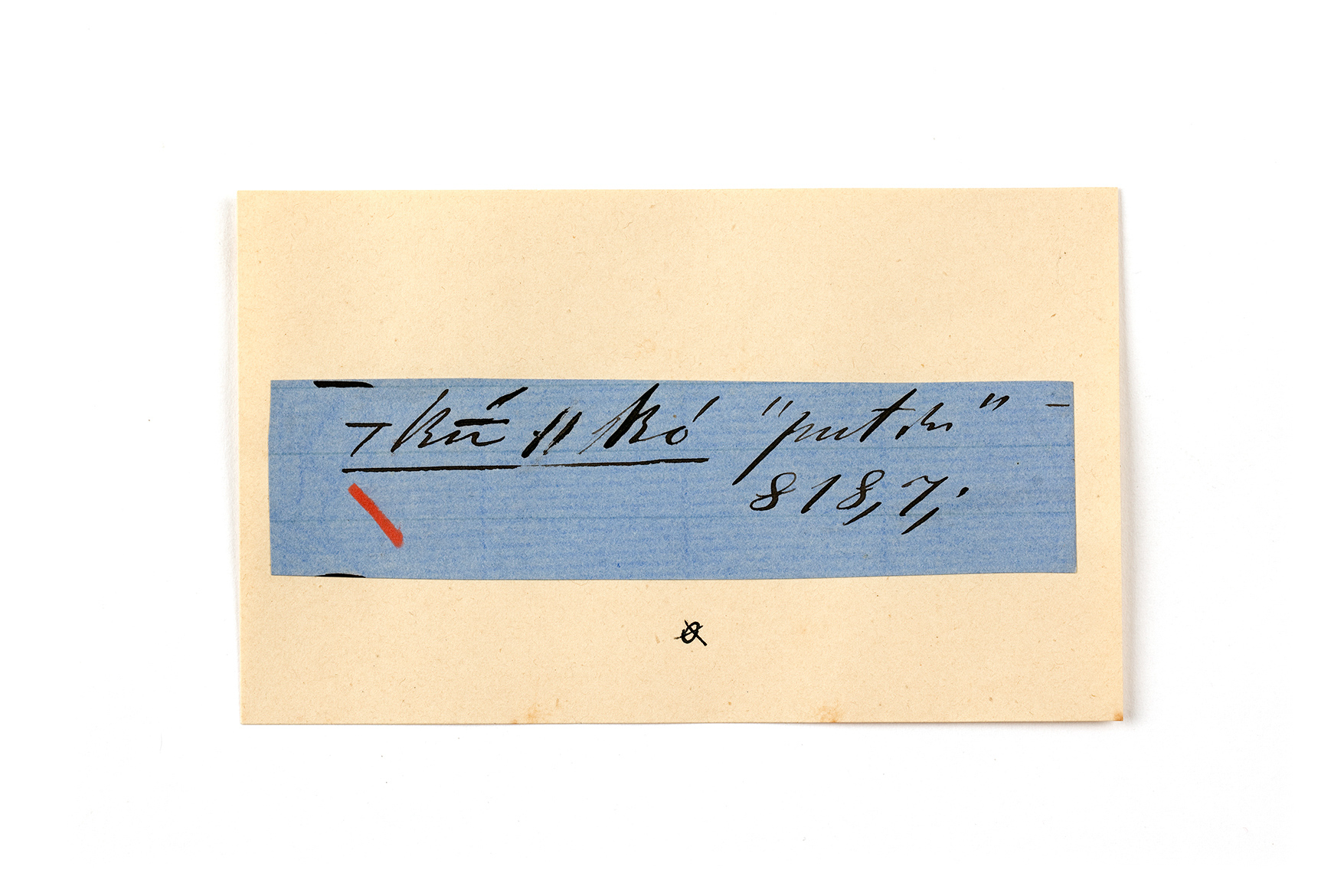 ink on blue paper glued on card