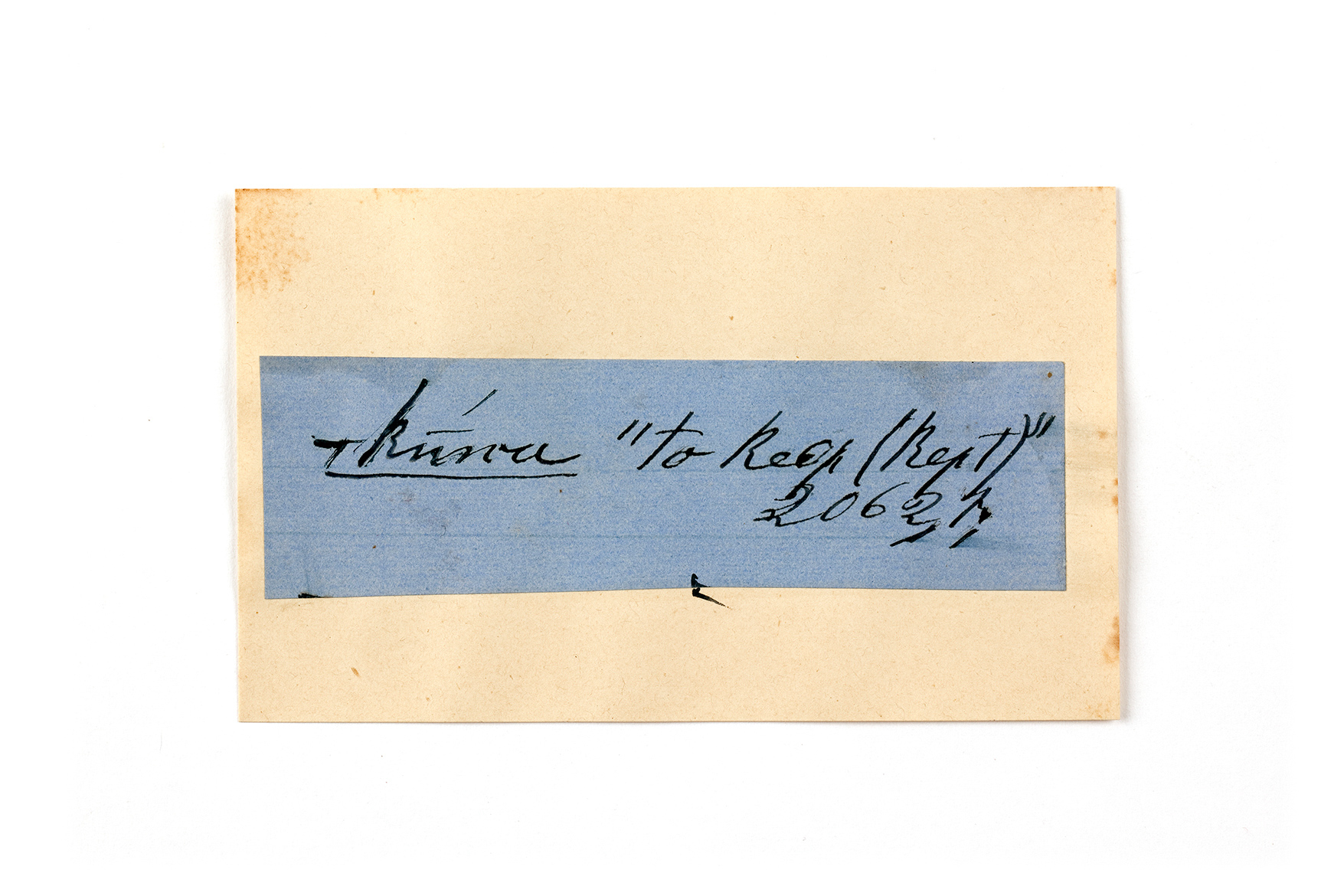 ink on blue paper glued on card