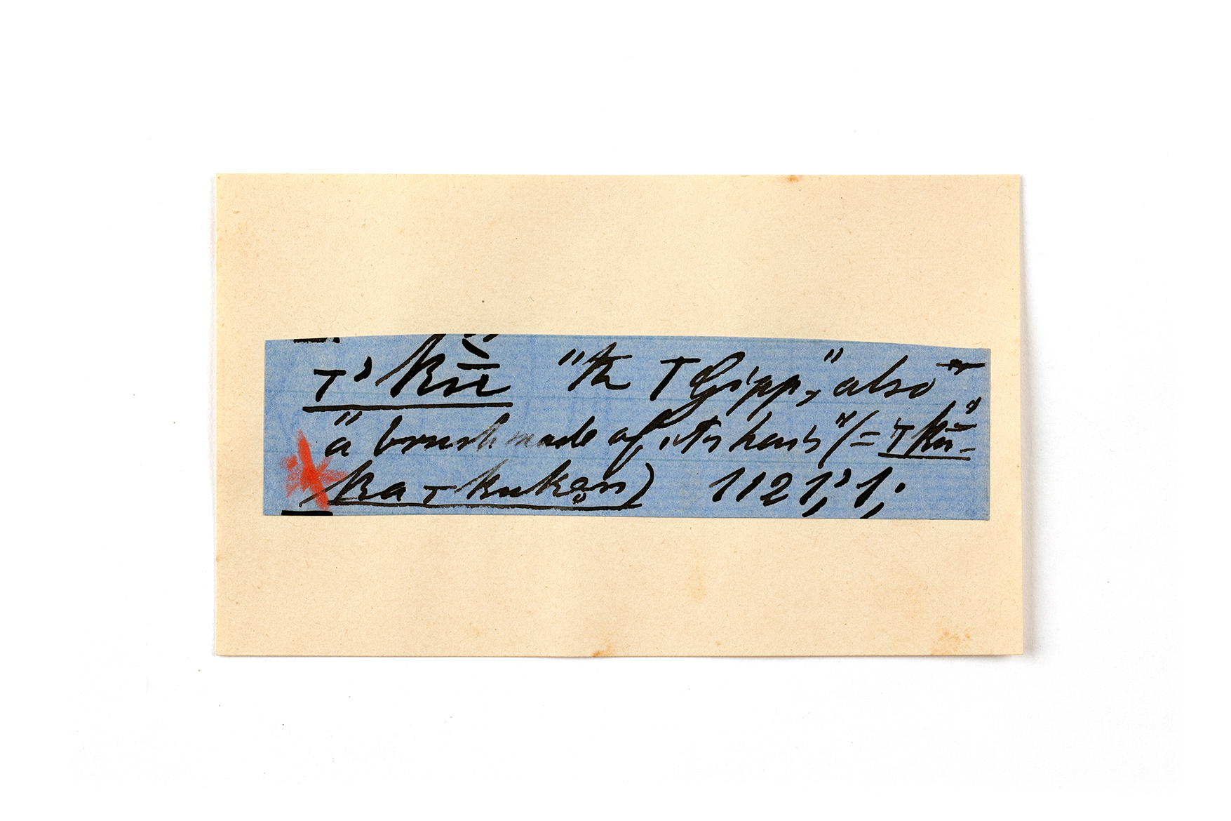 ink on blue paper glued on card