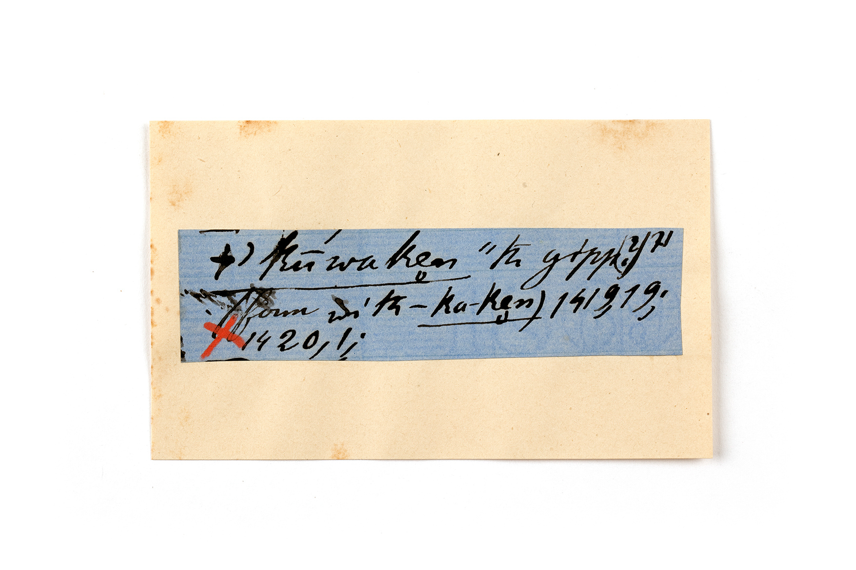 ink on blue paper glued on card