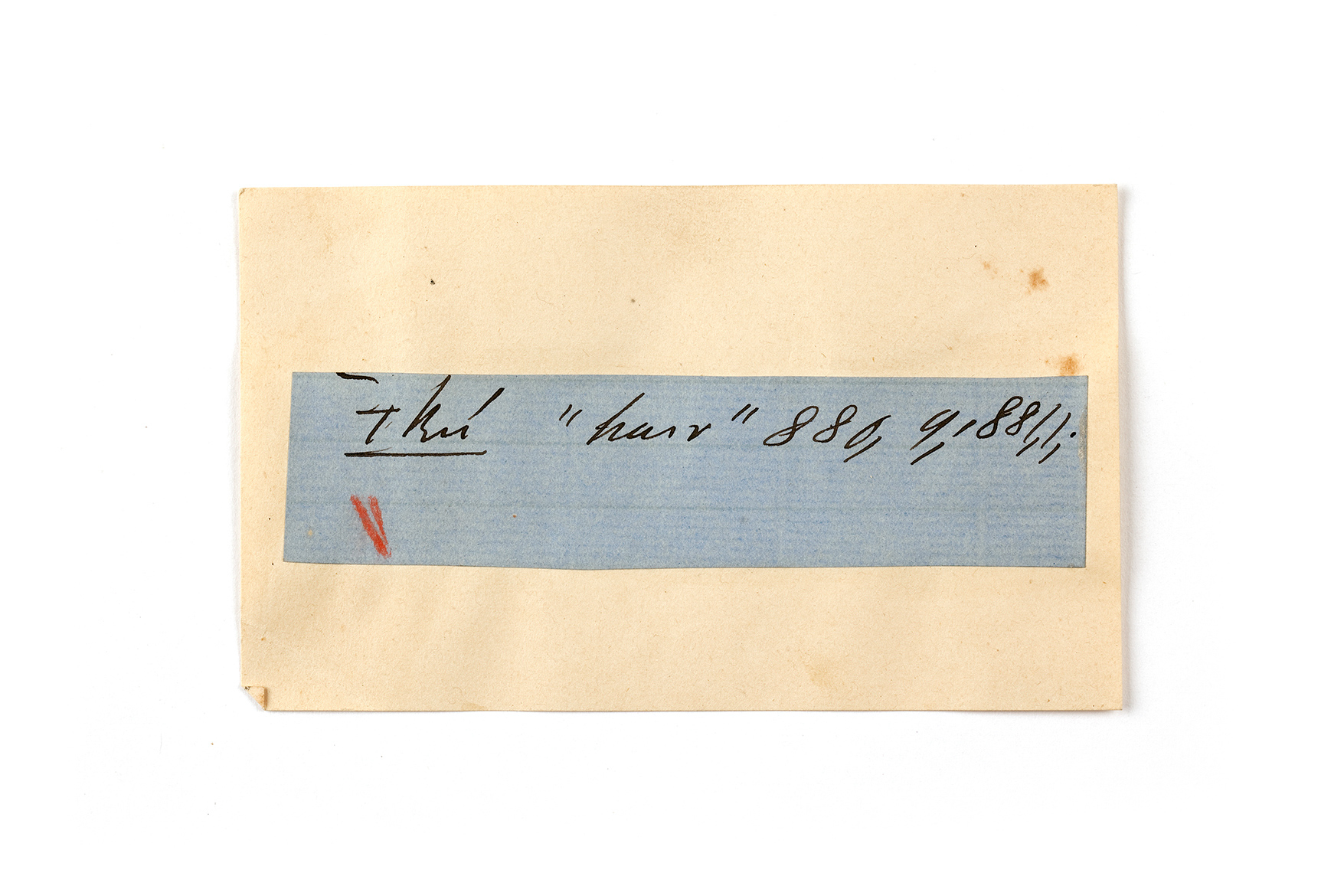 ink on blue paper glued on card