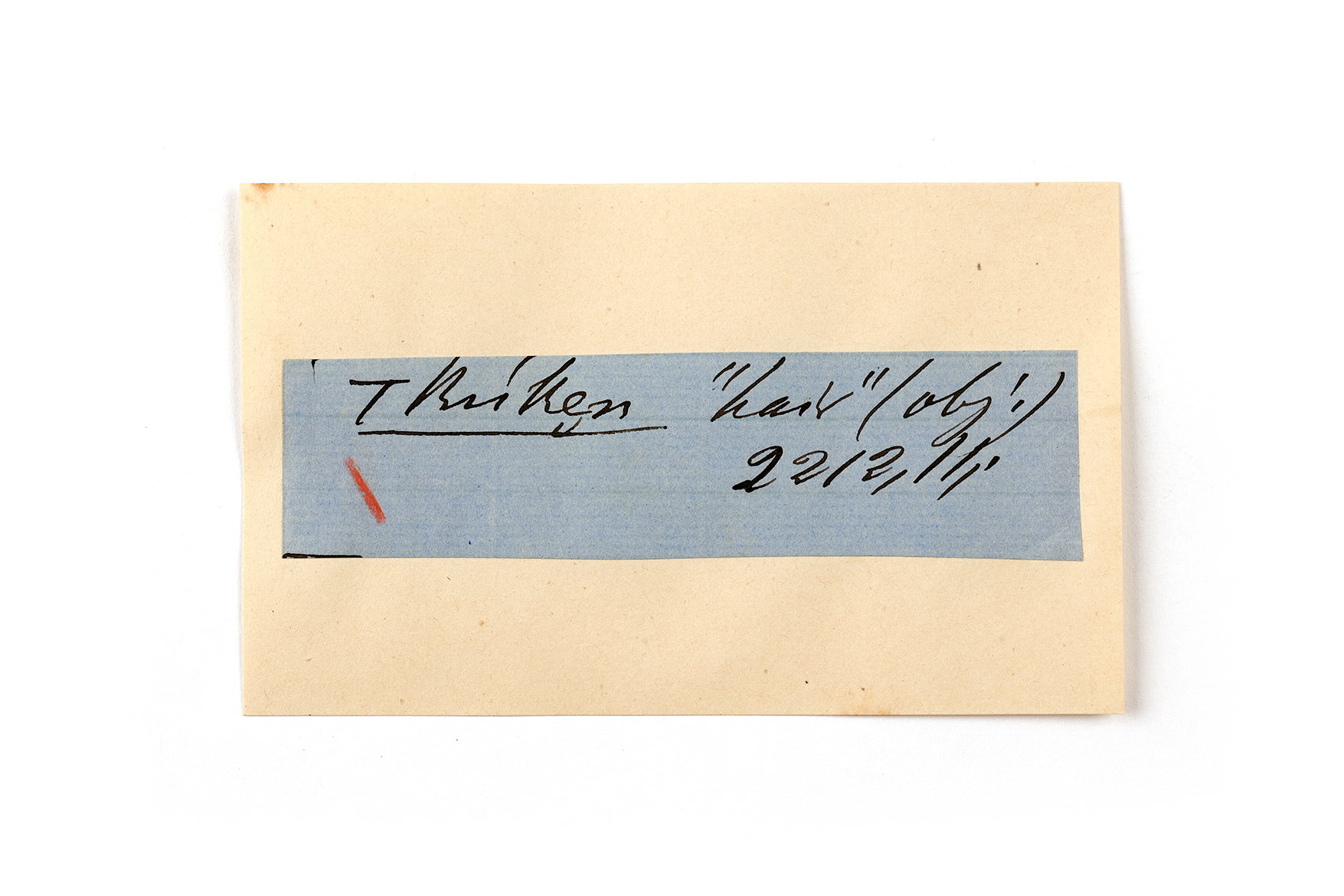ink on blue paper glued on card