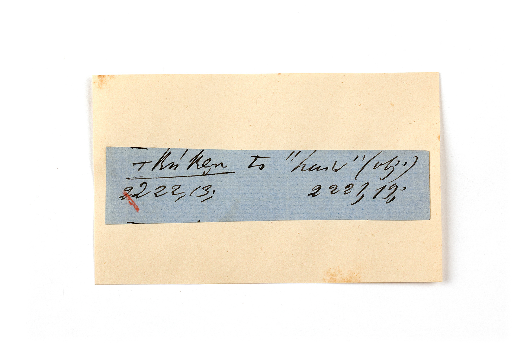 ink on blue paper glued on card