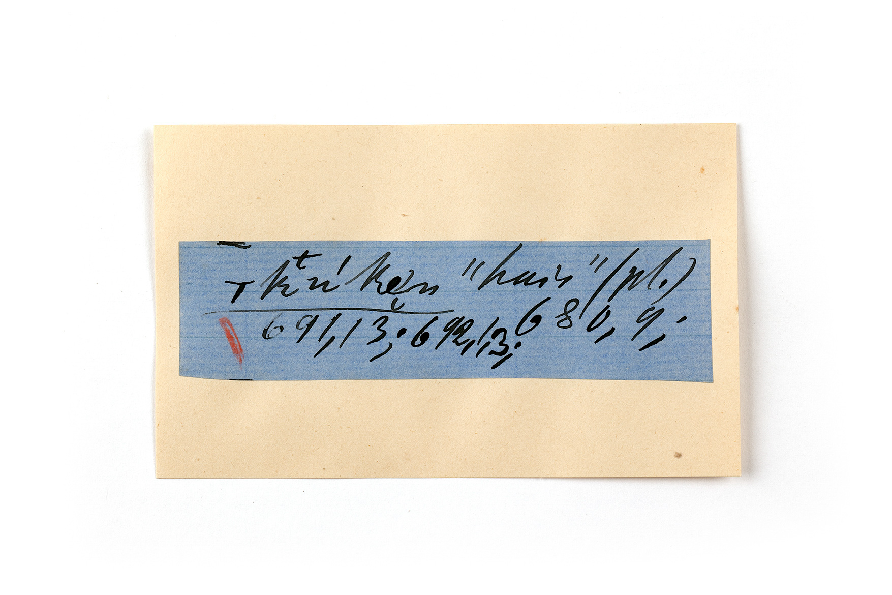 ink on blue paper glued on card