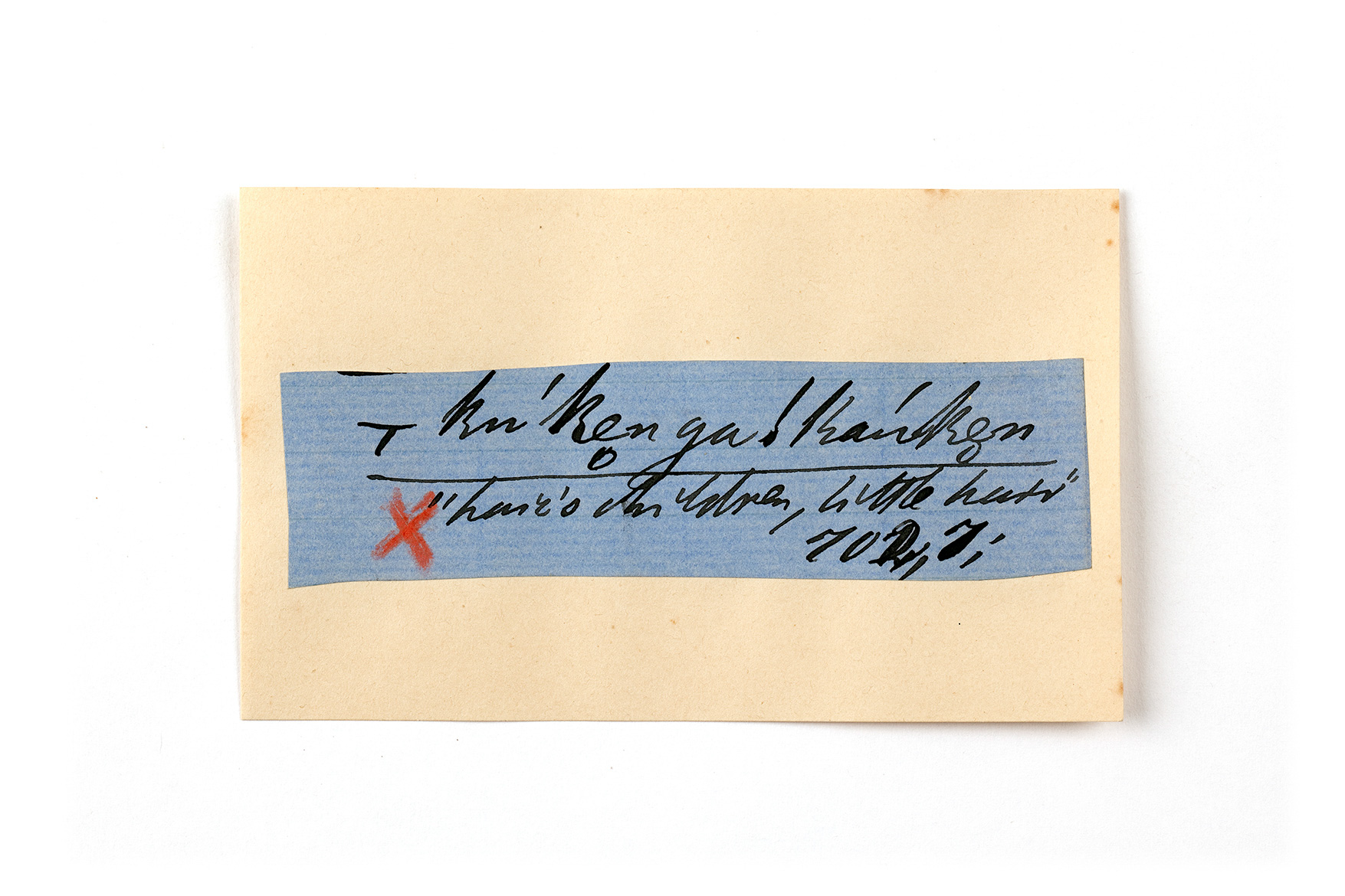 ink on blue paper glued on card