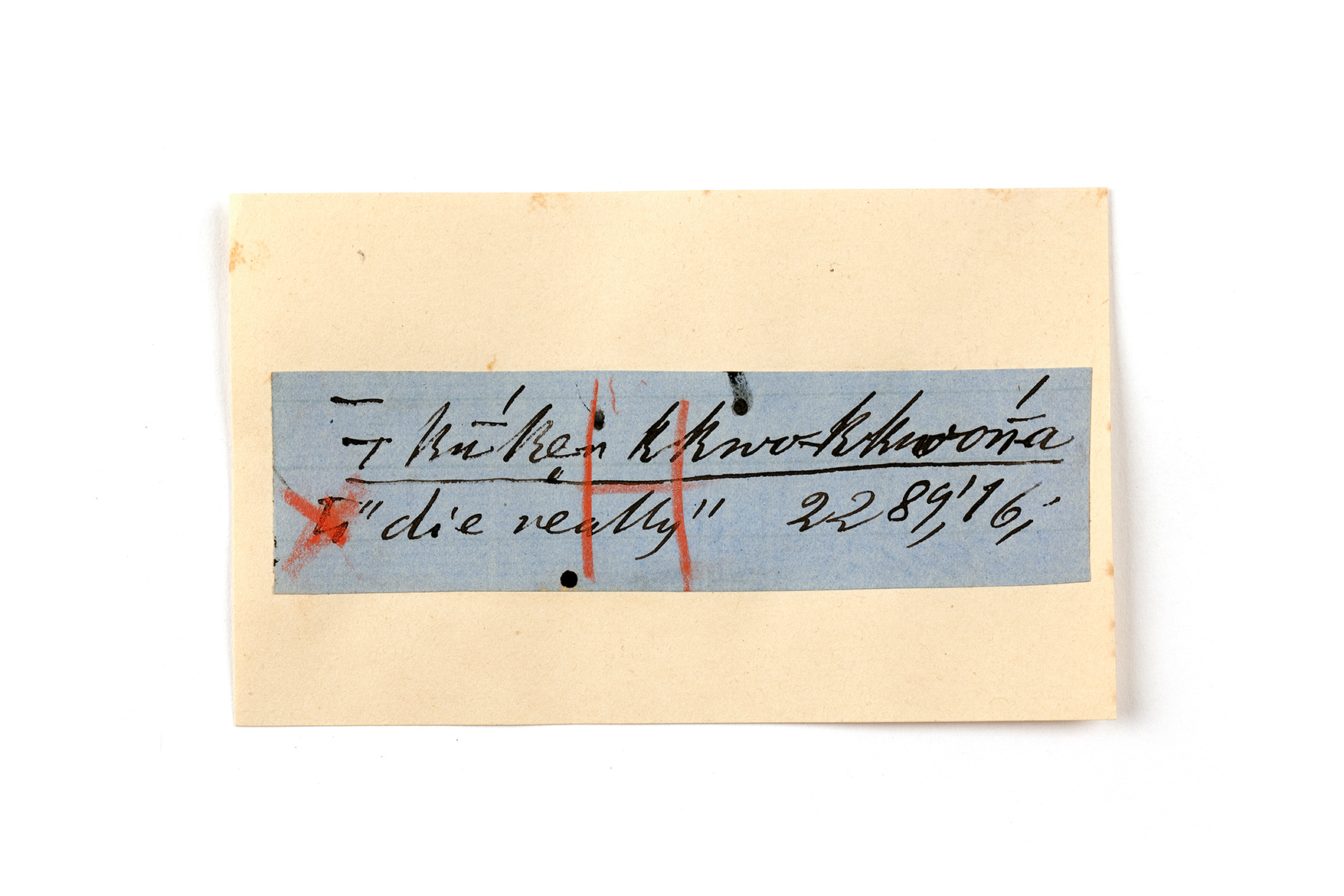 ink on blue paper glued on card